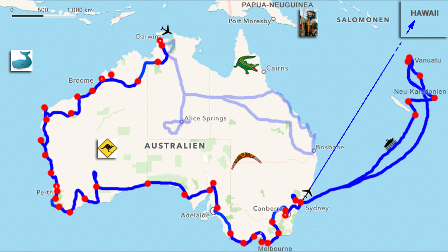 Aufenthalt an einem Ort: 25 Tage (Darwin, Australien) |