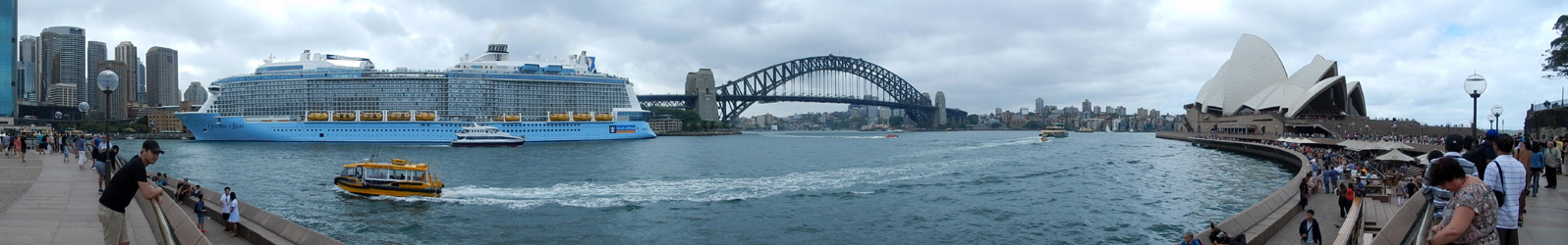 Ich setzte zunächst Susi mit unserem Gepäck am Bahnhof in Port Kembla ab und fahre dann zum Hafen. Ich stelle den Zerberus am zugewiesenen Parkplatz ab und muss ihn unversperrt mit dem Schlüssel auf dem Fahrersitz zurück lassen. Das Wohnmobil ist wie vorgeschrieben "blickleer", das heißt, es liegt oder steht nichts rum, sondern es ist alles in Schränken verstaut. Viele der auf dem Transport verbotenen Gegenstände haben wir in unsere Reisetaschen gepackt, verschenkt oder entsorgt: Lebensmittel, Putzmittel, Schmierstoffe, elektronisiche Geräte, sogar die leere (!) Gasflasche musste weg, Die angekündigte diesbezügliche strenge Kontrolle findet nicht statt. Oder kommt sie erst, bevor jemand das Auto auf das Schiff fährt? Ich gehe zu Fuß zum Bahnhof und wir fahren mit dem Zug nach Sydney. Leider erwischen wir dann die falsche Fähre und landen in Balmain anstatt in Balmain East. Das ist jetzt kein so großes Problem, der Fußweg zum Anlegestelle unseres Schiffes ist nur ein wenig länger. Leider leitet uns Google Maps dann noch fehl und wir müssen nach lamgem Gehen mit all unserem Gepäck feststellen, dass der Weg nicht weiter geht. Eine freundliche Anrainerin, die uns ein wenig ratlos stehen sieht, meint, das passiere hier jeden Tag, und bringt uns mit ihrem Auto zum Cruise Terminal. Km 21/14.993/90.758.