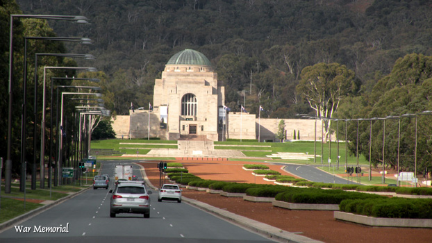 Unser erster Weg in Canberra führt uns auf den Mount Ainslie, von dem man einen echt tollen Blick über die sehr grüne Stadt hat. Man kann gut erkennen, dass die Stadt nicht gewachsen ist, sondern geplant wurde. Die Straßen um das Parlament sind in konzentrischen Kreisen angelegt und die Symmetrieachse der Stadt führt vom unter dem Mount Ainslie gelegenen War Memorial zum alten und neuen Parlament. Das War Memorial ist ein Kriegsdenkmal und zugleich ein riesiges Museum, das sehr beeindruckend und emotional, aber nicht pazifistisch, Geschichte ab Australiens Eintritt in den Ersten Weltkrieg 2016 lehrt. Wir sehen uns das alte und das neue Parlament an und machen eine Rundfahrt durch das Botschaftsviertel. Die meisten Botschaftsgebäude - Österreich ausgenommen - sind im Stil des jeweiligen Landes errichtet. Da Australiens Hauptstadt nur 400.000 Einwohner hat und total weitläufig ist, ist ein entspanntes Autofahren möglich; auch Parkplätze sind relativ leicht zu finden. Wir übernachten auf dem Mount Ainslie. Km 74/14.059/89.824.