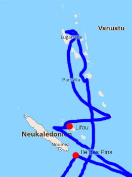Lifou ist die größte der vier zu Neukaledonien gehörenden Loyalitätsinseln. Vom Ankerplatz der Sun Princess haben wir herrlichen Blick auf die Kirche von Easo und die malerisch auf einer Landspitze gelegene Kapelle Notre Dame de Lourdes. An Land ist es zunächst ein wenig schwierig, weil es keine Taxis gibt, angeblich auf der ganzen Insel nicht. Schwer zu glauben. Es gelingt uns aber, an einer vierzigminütigen "Tour" durch den Ort Easo teilzunehmen. Wir halten kurz an der Kirche (leider versperrt), dürfen uns die Rundhütte des "Chiefs" ansehen (mit Matten ausgelegt, durch Leuchtstoffröhren erhellt, bis auf ein paar Blumenstöcke leer) und machen einen Fotostop an einer Bucht mit kristallklarem Wasser und Blick auf unser Schiff. Nun schnorcheln wir in der Nähe des Anlegers unserer Tenderboote, aber hier ist das Wasser vom feinen Sand getrübt. Ganz anders auf der anderen Seite der Landspitze. Da kassieren sie zwar stolze Eintrittsgebühr, weil's ein Naturreservat ist, aber dafür ist's, als würd man in einem Aquarium schnorcheln. Phantastisch! Beim Besuch der Kapelle Notre Dame mit großer Marienstatue auf dem Dach fallen Schnitzereien an Pfählen mit naturreligiösen, "heidnischen" Motiven auf, die sich sehr nahe an die Kirche wagen.