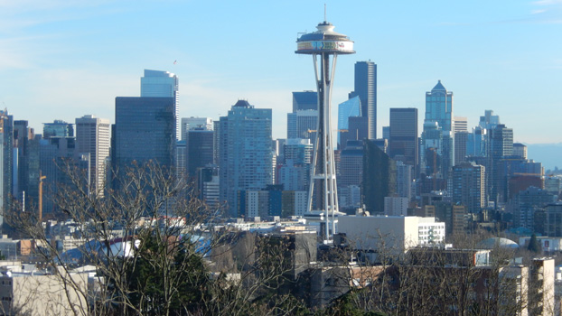 Die Nacht in einem Flugzeug von Alaska Arilines ist kurz und in Seattle ist es ziemlich kalt. Mit dem Zug fahren wir zum Columbia Tower, von dessen oberstem Stockwerk sich ein toller Blick auf die City und die Space Needle bietet, man sieht sogar bis zum schneebecketen 4.400 Meter hohen Mount Rainer, schon wieder ein Vulkan. Mit einem Bus geht es dann zum Kerry Park, wo wir phantastisch die Skyline vor uns haben. Am Abend fliegen wir dann ...