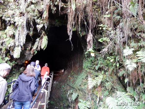 Wie alle Inseln Hawaiis ist auch Big Island vulkanischen Ursprungs. Besonders deutlich zeigt sich das um Kilauea an der Ostspitze der Insel, wo Lavamassen verschiedenen Alters das Bild prägen: Während über die älteren schon wieder Bäume gewachsen sind, wachsen aus der Lava von 1960 nur Bäumchen und aus jener von 1983 nur Farne und Gräser. Was sich hier abgespielt hat, demonstrieren die teils gruseligen Fotos hier1. Am Nachmittag fahren wir zum Halemaumau, einem der zur Zeit aktivsten Vulkane weltweit. Es ist kein Berg, sondern ein Plateau mit einem Krater von etwa vier Kilometern Durchmesser, in dem ein zweiter Krater von knapp einem Kilometer eingesunken ist, aus dem es raucht und dampft. Auf den bis zum Meer abfallenden 15 Kilometern ist alles von schwarzer Lava verschiedenen Alters übersät. Eine Asphaltstraße führt durch das Gebiet und zu verschiedenen Aussichtspunkten. An einer Stelle kann man durch eine mehrere Meter hohe und vielleicht 200 Meter lange Lavaröhre gehen. An anderen Stellen tritt häufig aus Nebengängen glühendes Magma aus, das zischend und dampfend ins Meer fließt, zuletzt vor zwei Wochen. Dieses Schauspiel zu sehen, ist uns nicht vergönnt. Als es dämmert, fahren wir zurück zum Krater, der nun in der Dunkelheit leuchtet wie der Eingang zur Hölle.