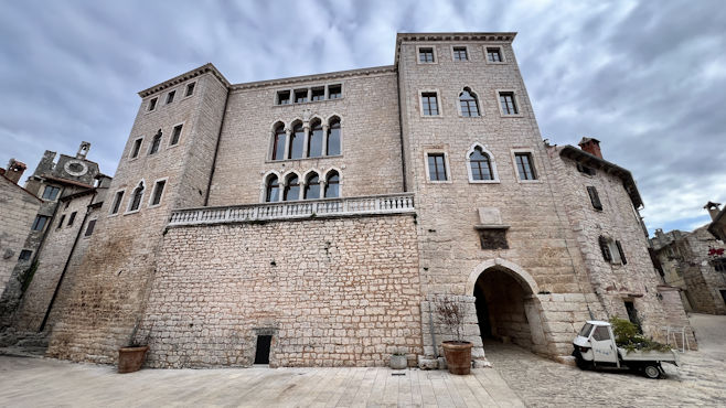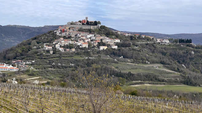 Wir sehen uns die mittelalterliche, kleine Stadt Bale an, um deren Zentrum, ein venezianisches Kastell, enge Gassen in konzentrischen Ringen verlaufen. Eine große Kirche, orangefarbenes Rathaus, Uhrturm, eine kleine Kapelle mit alten Fresken, alles sehr nett und keine Leute da. In Rovinj spazieren wir durch die Altstadt hinauf zur Kirche Sv. Eufemija und versuchen, beim Abstieg zum Uhrturm auf dem abgewetzten Pflaster nicht auszurutschen. Am Nachmittag sehen wir uns noch das alte Dorf Sveti Lovreč an und, weil in der Sonne so gut sitzen ist und es hier hinter der Kirche einen ansprechenden Parkplatz gibt, verlängern wir die Kaffeepause bis zum Morgen. Km 53/703.