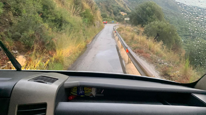 Der nächtliche Sturm hat ein Bäumchen quer über den Zufahrtsweg zu unserer Lichtung gelegt, das sich nur unter Einsatz von Säge und Hacke entfernen lässt. Unser erstes Ziel heute ist die Piedigrotta, eine Höhle am Meer, die im 17. Jahrhundert von überlebenden Schiffbrüchigen angelegt wurde und seither als Kapelle dient. In der Höhle befinden sich zahlreiche Statuen, einige Figuren wurden erst in letzter Zeit hinzugefügt, etwa jene, die John F. Kennedy und Papst Johannes Paul II. zeigen. In Pizzo machen wir kurz am Strand unter der Burg für einen Spaziergang halt. Als wir wieder abfahren wollen, springt der Zerberus nicht mehr an. Um zu verstehen, warum ich gleich voll in Panik gerate, muss man wissen, dass ich in den letzten Monaten zweimal den Starter erneuern lassen musste. Der Mechaniker hat damals gemeint, sollte der Starter wieder kaputt gehen, müsste man das Getriebe zerlegen, um die Schwungscheibe auszutauschen. Beim nächsten Startversuch springt der Motor aber an und wir sind lange unentschlossen, was wir weiter tun sollen. Wir entscheiden, 50 Kilometer nach Lamezia Terme zurückzufahren, um die dortige Mercedes-Werkstätte aufzusuchen. Dort sind sie sehr freundlich, nehmen sich sofort für uns Zeit, schließen den Diagnosecomputer an, finden aber keinen Fehler, raten uns, ein Relais auszutauschen, das sie aber nicht vor Dienstag ins Haus bekommen. In der Annahme, dass das Schwungrad und nicht das Relais ursächlich ist, setzen wir die Reise fort. Die Werkstatt nimmt übrigens kein Geld von uns, nicht mal ein Trinkgeld. In Zungri sehen wir uns noch die Citta di Pietra an, eine bis ins 15. Jahrhundert bewohnte Höhlensiedlung. Wir übernachten in Parghelia auf einem Parkplatz, der nur durch drei Meter hohes Schilf vom Meer getrennt ist. Der Starter hat übrigens bisher keine weiteren Probleme gemacht.1 Km 223/2.196.