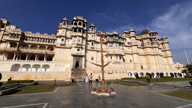 Am Vormittag besichtigen wir zunächst den Jagdish-Tempel, an dem vor allem die kunstvollen Reliefs beeindrucken. Dann geht es zum riesigen Stadtpalast mit seinen vielen prunkvoll ausgestatteten Räumen. Es bietet sich ein schöner Blick auf die Inseln im Pichola-See. Schließlich spazieren wir durch den Sahelion-ki-Bari-Garten, der einst nur von Frauen betreten werden durfte. Am Abend machen wir dann noch eine Bootsfahrt auf dem Pichola-See. Auf der Insel Jagmandir genießen bei überteuerten Cocktails den fantastischen Blick auf die Stadt.