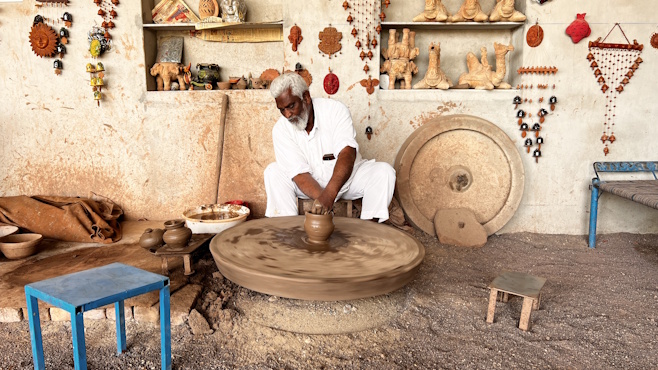 Die Bishnoi sind eine Sekte, die sich schon seit Jahrhunderten dem Schutz der Natur widmet. Sie leben nach 29 großteils vernünftig klingenden Geboten, essen kein Fleisch, fällen keine lebenden Bäume und konsumieren zur Nahrungsergänzung Opium. Wir besuchen eine Bishnoi-Familie, sehen beim Fladenbrot Backen, Töpfern und bei der Opium-Extraktion zu. Sabine kostet das Extrakt natürlich und ist ein wenig schräg drauf die nächsten zwei Stunden. In einer kleinen Stadt essen wir recht gut zu Mittag. Viele Restaurants haben zwar eine große Speisekarte, doch die darin aufgeführten Fleischgerichte gibt es gar nicht. Die Auswahl an vegetarischen Gerichten ist aber groß, allerdings weiß man oft nicht, was genau man bestellt. Auf der anderen Straßenseite entdecken wir einen kleinen Supermarkt, das kommt sehr gelegen. Der Besitzer ist so erfreut über unseren Besuch, dass er den Einkaufskorb für uns trägt und uns dann an der Kassa Stühle anbietet, damit wir es bequem haben, während er die Rechnung macht. In Ranakpur besichtigen wir den fantastischen Jain-Tempel aus weißem Marmor. Über tausend Säulen, von denen keine zwei gleich sind, tragen eine Vielzahl von Kuppeln, alles ist mit detaillierten Ornamenten verziert. Welch berührender Ort! Kurz vor Sonnenuntergang erreichen wir Udaipur und wir beziehen für zwei Nächte ein Zimmer im wunderschönen Hotel Amet Haveli, direkt am Pichola-See.