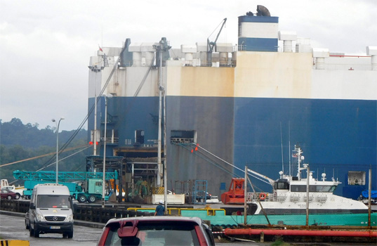 Gleich in aller Früh fahre ich mit einem Taxi zum Hafen, den ich aber nicht betreten darf. Ich muss am Zolltor warten. Die Straits Challenger ist noch da, davor sehe ich auch den Zerberus stehen. Im Nu kommt der Agent von Giga Shipping, der fragt nach dem Kennzeichen und schon wird unser Auto zum Gate gefahren. Ich muss mich nicht ausweisen, keine Papiere vorweisen, nur ein paar Unterschriften leisten, kriege Fahrzeug und Carnet ausgehändigt, muss einen Zöllner einen kurzen Blick ins Auto machen lassen und schon wäre ich fertig (bis hierher 15 Minuten), hätte ich nicht einen Blick ins Carnet gemacht. Da gibt es nämlich Unangenehmes zu sehen: Erstens wurde das Carnet auseinandergenommen und neu, die Blätter in falscher Reihenfolge, zusammengeklammert. Zweitens wurde vom Zoll in Kota Kinabalu die Einfuhr des Fahrzeuges nach Malaysia gestempelt, aber in Port Klang nicht ausgestempelt. Jetzt haben wir das Auto zweimal nach Malaysia eingeführt. Der Agent bringt mich ins Zollbüro. erklärt den dortigen drei uniformierten Damen das Problem und verabschiedet sich dann. Ich diskutiere mit den Ladies, wie man die Sache lösen könnte, aber die Damen möchten auf den Chef warten. Der Chef ist ebenfalls weiblich, möchte aber auf den Chef-Chef warten und so vergehen fast eineinhalb Stunden, während derer ich den Beamtinnen und deren mittlerweile eingetroffenen männlichen Kollegen beim Nichtstun zusehe, bis man die zweite Fahrzeugeinfuhr rückgängig gemacht hat. Mühsam. Auf dem Parkplatz unseres Hotels entfernen wir die Trennwand und es gelingt uns, die Bretter unter dem Lattenrost für's nächste Mal zu verstauen. Nun aber nichts wie raus aus der Stadt! Etwa 30 Kilometer nordöstlich gibt es zwei tolle Sandstrände. Etwa auf halbem Weg geben wir unsere Wäsche in einer Laundry ab, um sie morgen in der Früh wieder abzuholen. Leider müssen wir feststellen, dass beide Strände zu je einem Resort gehören und das Gebiet großräumig abgesperrt ist. Keine Chance, dem Meer auch nur nahe zu kommen! Also zurück zur Wäscherei, wo wir uns die Zeit, bis die Wäsche fertig ist, vertreiben, indem wir durch die benachbarten Läden bummeln und ich meine Schlapfen reparieren lasse. Wir fahren zurück nach Kota Kinabalu, weil wir hoffen, dass wir auf dem Hotelparkplatz übernachten dürfen. Dürfen wir aber nicht. Vielleicht hätten wir einfach nicht fragen sollen ... Wir übernachten auf einem öffentlichen Parkplatz, der leider recht laut ist. Km 93/2.566/56.334.