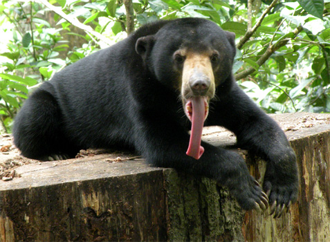 Nasenaffen gibt es nur auf Borneo. Das Proboscis Monkey Sanctuary liegt in einem Mangrovenwald an der Labuk Bay. Auf Holzstegen kann man zu zwei Fütterungsstationen gehen, wo die Nasenaffen zu festgelegten Zeiten gefüttert werden, damit man sie zu Gesicht bekommt. Die Futtermenge ist aber so gering, dass sie sich wohl das meiste Futter selbst suchen müssen. Die Affen bilden Gruppen, hier eine Familie, da eine Gruppe Single-Männchen, und es scheint eine strenge Hierarchie zu geben. Später sehen wir uns noch die Malaienbären im Bornean Sun Bear Conservation Center an und zum Schluss statten wir dem Orang Utan Rehabilitationszentrum (Orang Utans gibt es nur mehr auf Sumatra und Borneo) einen Besuch ab. Auch hier wird täglich zur gleichen Zeit Futter angeboten. Meist kommen Orang Utans, es gibt aber keine Garantie. Heute kommen knapp zehn. Sie hangeln sich an zur Futterplattform gespannten Seilen entlang, auch einige Junge sind dabei. Es ist eine Freude, zuzusehen wie die Affen mit ihren langen Gliedmaßen geschickt herumturnen. Mit dem Wetter haben wir echt Glück heute, der Regen beginnt erst am Abend. Wir fahren noch nach Sandakan, wo wir im Hof der Pfarre St. Mary übernachten. Im Auto hat es 32 Grad. Fenster müssen zu bleiben, weil's so schüttet. Km 58/2.980/56.748.