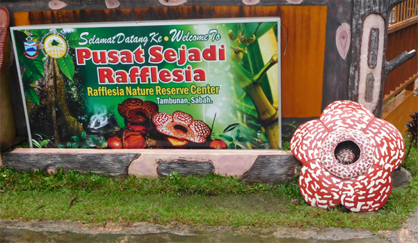 Hier in Borneo ist die Regenzeit schon weiter fortgeschritten als in West-Malaysia. Es regnet jeden Tag von 3 bis 2. Das ist zwar ein Scherz, aber das Körnchen Wahrheit ist, dass es länger regnet als nicht regnet. In der Nacht hat es ein paar Mal ordentlich geschüttet, tagsüber ist es meist nur ein Nieseln. Wir überqueren die Crocker Range, einen von Regenwald bedeckten Gebirgszug, die Passhöhe liegt auf etwa 1.700 Metern. Kurz darauf kommen wir zum Rafflesia Information Center, einem Naturreservat, in dem Rafflesien wachsen, Blumen mit den größten Blüten der Welt, bis zu 70 Zentimeter im Durchmesser. Leider blühen die Blumen nur sehr selten und dann nur für fünf Tage. Aber hier in dem 3,5 km2 großen Reservat gibt es so viele, dass durchschnittlich vier im Monat blühen. Wir haben leider Pech: Die Ranger, die den Park regelmäßig nach Blüten absuchen, sagen uns, dass zur Zeit keine blüht. Die Straße, die uns über Tambunan nach Ranau bringt, führt durch hügelige Urwaldlandschaften, die teils im Nebel liegen. In den Dörfern wird Reis angebaut, Bananenstauden, Öl- und Kokospalmen säumen die Straße. Wir machen einen Abstecher zum Rafflesia Garden in Poring, wo wir ebenfalls enttäuscht werden. Auf der Weiterfahrt weicht der Urwald zusehends Ölpalmplantagen. Etwa 30 Kilometer vor Sandakan biegen wir zum Labuk Bay Proboscis Monkey Sanctuary ab, wo wir hoffen, morgen Nasenaffen anzutreffen. Wir dürfen unter der Überdachung des Gates übernachten und können heute Nacht auch trotz Regen die Dachluken öffnen. Kaum ist es dunkel, startet eine unglaubliche Geräuschkulisse. Der Regenwald lebt! Km 356/2.922/56.690.