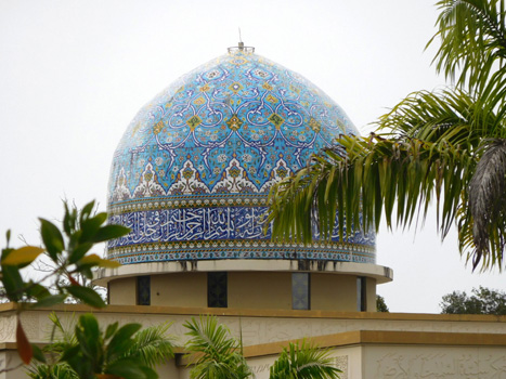 Mit einem Boot queren wir den Sungai Sarawak, um uns das alte Fort anzusehen. Wir sind die einzigen Fahrgäste. Um mich nicht über's Ohr hauen zu lassen, frage ich den Bootsführer nicht, was es kostet, sondern gebe ihm zwei Ringgit (0,45 Euro). Da er nicht mehr verlangt, wird's wohl gepasst haben. Vor der Rückfahrt sagt mir eine junge Frau, die auch mitfährt, auf meine Frage, dass ein halber Ringgit der übliche Preis ist. Eigentor. Der Zerberus bringt uns nun zu weiteren Sehenswürdigkeiten auf der Nordseite der Stadt. Wir spazieren durch den sehr nett angelegten Orchideengarten, sehen uns die Staatsmoschee an, für deren Besuch wir uns in dunkle Kutten hüllen müssen, bestaunen die Koranschule mit persischer Kuppel und statten dem Katzenmuseum einen Besuch ab. Dabei handelt es sich nicht, wie angenommen, um ein kleines Privatmuseum, sondern um ein von der Stadt Kuching unterhaltenes, in einem riesigen wie eine Raumkapsel aussehenden Gebäude untergebrachtes Museum. Unglaublich, was man zum Thema Katzen sammeln kann: Ausgestopfte Tiere, Skelette, Porzellanfiguren, Spielzeug, Karten, Briefmarken, Katzenfutter, Katzenklo, Katzenmumien, Hello Kitty, Garfield ... Bevor wir die Stadt verlassen, tätigen wir noch einen Einkauf. Alkohol soll ja in Indonesien noch schwieriger zu bekommen sein als hier in Malaysia. Wer weiß, ob es in der abgelegenen Gegend, in der wir in den nächsten Tagen unterwegs sein werden, Brot gibt? Oder Butter oder Käse. In Supermärkten ist, wenn überhaupt, Alkohol in der allerletzten Ecke ein einem separaten Raum zu finden. Erinnert irgendwie an Videotheken (für die ganz Jungen: das sind Geschäftslokale, in denen man früher DVDs ausleihen konnte), fehlt nur der Vorhang. Bier gibt es ab 6 Ringgit ( 1,35 Euro) je 330 ml-Dose, Wein ist noch teurer als Schnaps, weit jenseits der zehn Euro die Flasche. Wir fahren nun von Kuching nach Süden und steuern ein Dorf namens Annah Rais an, in dem es drei alte Langhäuser geben soll. Die gibt es auch, aber sie sind bei weitem nicht so beeindruckend, wie jene der Iban, weil sie nicht als ein Gebäude imponieren, sondern wie aneinander gebaute Einzelhäuser. Eines der Häuser ist mit "Headhouse" beschriftet und ist nicht, wie vermutet, das Büro des Bürgermeisters, sondern beinhaltet einen Raum, in dem sich in einem von der Decke hängenden Drahtkorb mehrere Totenschädel befinden. Auf einer Nebenstraße geht es Richtung Grenze, öfter mal fehlt die halbe Straße. Abgerutscht mitsamt Leitplanke, sofern vorhanden. Wir treffen Männer, die einen großen Baum neben der Straße gefällt haben. Da sie keinen LKW zum Abtransport des Holzes haben, schneiden sie den Stamm gleich hier mit der Motorsäge in Bretter. In einem winzigen Dorf mit aus der Ferne nett aussehender, bei näherem Hinsehen renovierungsbedürftiger Kirche halten wir und fragen, ob wir hier übernachten dürfen. Dürfen wir. Ein alter Mann, dem ein winziger Laden gehört, hat diesbezüglich das Sagen. Im Gegenzug tätigen wir einen Einkauf, erstehen noch ein paar chinesische Bierdosen, die billiger sind als das Carlsberg aus dem Supermarkt, Kekse und Einmalrasierer. Trocken Rasieren geht ja schon lange nicht mehr, weil die Haut nie trocken und der Elektrorasierer ständig verklebt ist. In dem Dorf ist es total ruhig. Natürlich gibt es Geräusche, Stimmen, Kinder, Grillen, ein Moped, einmal in der Stunde ein Auto, aber es gibt keine Hintergrundgeräusche, keinen dauernden Verkehrslärm. Wir genießen es! Km 122/5.269/59.036.