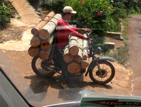Wir schlafen schlecht und sind in der Früh grantig, weil der Parkplatz anscheinend ein beliebter Treffpunkt ist. Bis weit nach Mitternacht fahren Autos zu und ab, diskutieren Leute lautstark direkt neben dem Zerberus. Zudem ist es bereits um halb acht affig heiß und wir haben einfach keine Lust zu einer Stadtbesichtigung. Wir steuern daher das nächste Ziel an, die Tempel von Prambanan, etwa 20 Kilometer außerhalb von Yogyakarta. Die große buddhistische Tempelanlage, um die ein Park angelegt wurde, ist fantastisch. Die Welt ist wieder in Ordnung. Ein paar Kilometer weiter befinden sich weitere Tempel, Candi Plaosan, ebenfalls sehr ansprechend. Hingegen hat der auf einem Hügel gelegene "Palast" Kraton Ratu Boko rein gar nichts zu bieten. Wegen des tollen Blicks von der gemütlichen Restaurantterrasse war die Auffahrt allerdings nicht umsonst. Über Solo (Surakarta) geht es weiter ostwärts, wir wählen die Straße, die den Vulkan Gunung Lawu nicht umfährt, sondern direkt über ihn führt. Etwas abseits liegt auf 1.500 Metern der hinduistische Cetho-Tempel. Die Auffahrt ist enorm steil, die Tempelanlage, die in 13 Ebenen am Hang liegt, vermittelt ein mystisches Bild, da die Wolkenuntergrenze bei 1.150 Metern liegt. Unmittelbar vor uns ist eine Gruppe Hindus aus Bali angekommen. Die Leute haben schachtelweise Opfergaben mit, Blumen, Kränze, Räucherstäbchen, kleine Geldscheine, die sie vor Statuen und an Altären arrangieren. Wir fahren noch bis zum Candi Sukuh, einem weiteren Tempel auf 1.200 Metern, den wir uns morgen ansehen wollen. Km 139/6.396/60.041.