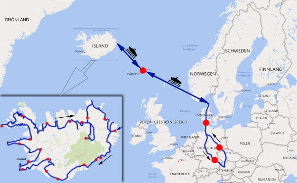 Serbien, Bulgarien, Türkei, Georgien, Armenien, Iran, Turkmenistan,