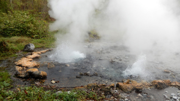 Es hat fast die ganze Nacht dahingeregnet. Als wir mit dem Frühstück fertig sind, hört es aber auf und wir wollen uns den Geysir ansehen. Der Weg dort hin führt durch ein Stück Urwald, in dem es noch immer von den Bäumen tropft. Regenwald halt. Der Geysir ist ziemlich unspektakulär: Inmitten einer großen Dampfwolke sprudelt eine maximal 50 Zentimeter hohe Fontäne. Das Wasser tritt mit 90 bis 100 Grad an die Erdoberfläche, informiert ein Schild. In einiger Entfernung gibt es ein Badebecken, in dem ich mich gerne räkeln würde. Doch das ist nur etwas für extrem hart Gesottene, denn die Wassertemperatur im Becken beträgt deutlich über 40 Grad. Zurück beim Zerberus lege ich mich unters Auto und sehe nach, woher seit Tagen Diesel runtertropft. Eine Schlauchschelle scheint kaputt. Da die Tanks zur Zeit ziemlich voll sind, muss die Reparatur ein oder zwei Tage warten. Wir fahren also tropfend weiter auf der noch immer in vielen Kurven berauf- und ab verlaufenden Straße, bis wir endlich die von Chiang Mai nach Norden führende Fernstraße erreichen. Die ist vierspurig ausgebaut und es geht flott voran. Es wechseln Wälder, deren Bäume bereits blattlos sind, mit solchen, die noch bunte Blätter tragen und immergrünen Wäldern. Gelegentlich blühen sogar Bäume. In Mae Taeng machen wir einen Abstecher zum Maetaman Elephant Camp, das uns aber nicht gefällt, weil es hier nur so von Touristen wimmelt, die busweise angekarrt werden. Außerdem ist uns der Besuch nicht 2.000 Baht (53 Euro!) p.P. wert. Wir fahren also weiter nach Norden und biegen dann zur Tham Chiang Dao, einer weiteren Tropfsteinhöhle, ab (40 Baht, 1 Euro p.P.). Deren erster Teil ist mit farbigen Lampen beleuchtet und beherbergt viele Buddhastatuen. Von diesem Teil zweigen mehrere Gänge ab, die unbeleuchtet sind und die man nur mit Führer oder Lampe begehen darf. Da wir beim Besuch einer Höhle natürlich unsere starke Taschenlampe mithaben, erkunde ich zwei dieser Gänge (Susi wartet indessen), die in Räume mit schönen Tropfsteinformationen und gelegentlich von der Decke hängenden Fledermäusen führen. Einmal geht es eine Stiege etwa zwei Stockwerke hinauf, wobei es immer heißer wird, dann wieder Gänge entlang, vorbei an Abzweigungen, bis zu einem Altar mit Buddhastatuen. Der Rückweg stellt meinen Orientierungssinn auf eine harte Probe, will heißen, dass ich mich echt kurz mal verlaufe. Gott sei Dank ist Susi so cool, dass sie nicht gleich nervös wird, wenn ich mal eine halbe Stunde in einer Höhle verschwinde. Kurz vor Fang biegen wir nach Osten ab; die Straße führt nun durch eine eigenartig anmutende Hügellandschaft: Abschnittsweise sind ganze Hügelketten völlig abgeholzt und von verdorrtem Gras bedeckt. Wir übernachten in einem kleinen Ort auf dem Parkplatz eines einfachen Restaurants, wo wir praktischer Weise auch gleich zu Abend essen. Die Leute, die neben dem Parkplatz wohnen, kommen gleich her und fragen, ob wir duschen möchten und ob wir schon gegessen haben. Voll nett! Später wird es so kühl, dass wir mit Weste draußen sitzen. Km 237/770/45.172.