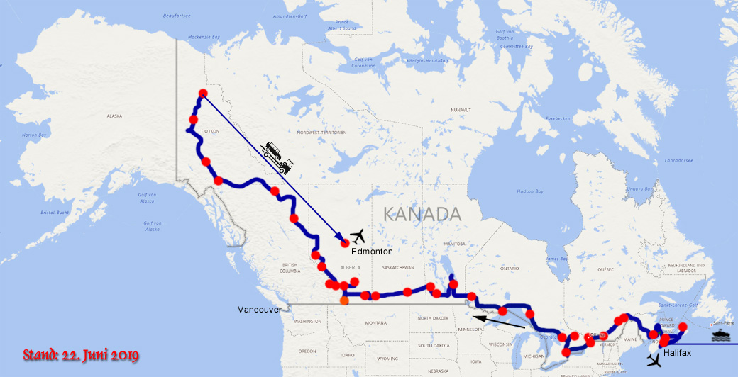Bremerhaven Richtung Kanada. Anfang Mai fliegen wir mit einem Stopover in