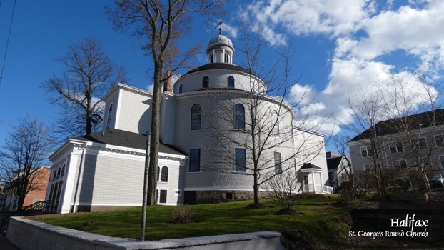 Bei einer anderen Gastankstelle mache ich's heute anders: Ich gehe zuerst an die Kasse und bezahle eine Flaschenfüllung und dann mit dem Beleg zur Füllstation. Der Kerl dort vermisst an unserer Gasflasche das kanadische Prüfzeichen und meint, ohne es darf er die Flasche nicht füllen. Ich zeige ihm das österreichische Prüfzeichen, aber das beeindruckt ihn wenig. Erst als er sieht, dass ich schon bezahlt habe, gibt er nach. Nun gilt es nur noch Wasser für unseren Tank zu finden. Das erweist sich als total schwierig, denn an Tankstellen ist keines zu kriegen und es gibt auch an Rast- oder Picknickplätzen keine Wasserhähne. Am Nachmittag sind wir schon so verzweifelt, dass wir beschließen, Wasser aus einem Fluss zu verwenden. Ich hab' schon die Badeschlapfen an und bin grade dabei, mit einem Kanister ins Wasser zu steigen, da sehe ich in kurzer Entfernung einen Wohnwagen zwischen Bäumen hervorlugen. Und noch einen. Ein Campingplatz! Hier dürfen wir gratis unsere Tanks mit Trinkwasser füllen. Endlich sind wir voll versorgt und können entspannt unseren Ausflug in die westliche Umgebung von Halifax fortsetzen. Am Vormittag haben wir uns schon Mahone Bay angesehen, ein Dorf mit sechs Kirchen, und Lunenburg, eine stimmungsvolle kleine Hafenstadt mit bunten, teils alten Häusern. Die Straße führt durch ausgedehnte Mischwälder, die Laubbäume tragen allerdings noch keine Blätter. Die Natur ist, verglichen mit Österreich, etliche Wochen "hinten", und das obwohl wir uns in gleicher geografischen Breite wie Venedig und Südfrankreich befinden. Hier blühen gerade erst die Forsythien und die Märzenbecher. Ob die hier wohl Maibecher heißen? Wir besuchen noch Peggy's Cove, ein Fischerdorf mit auf eine Felsnase gebautem Leuchtturm. Dann geht es durch von Seen und Meeresarmen durchzogene Wälder zurück nach Halifax. Von der Zitadelle hat man einen netten Blick über die Stadt. Wir sehen uns noch St. Paul's Church an, das älteste Gebäude der Stadt, und St. George's Round Church, eine ungewöhnliche Rundkirche mit Galerie. Auf dem ruhigen Parkplatz neben der Kirche übernachten wir. Leider macht uns der Zerberus schon wieder ein wenig Sorgen. Er gibt zwei pathologische Geräusche von sich. Das eine ist ein drehzahlabhängiges Surren, das schon kurz vor der Fahrt nach Bremerhaven aufgetreten ist, und das von einer der Rollen kommt (aber von welcher?), über die der Flachriemen läuft. Leider war keine Zeit mehr zum Reparieren. Das andere ist ein Knatschen beim Überfahren von Bodenwellen und kommt vermutlich von einem Traggelenk. Wir behalten beides unter Beobachtung. Km 286/373/98.929.