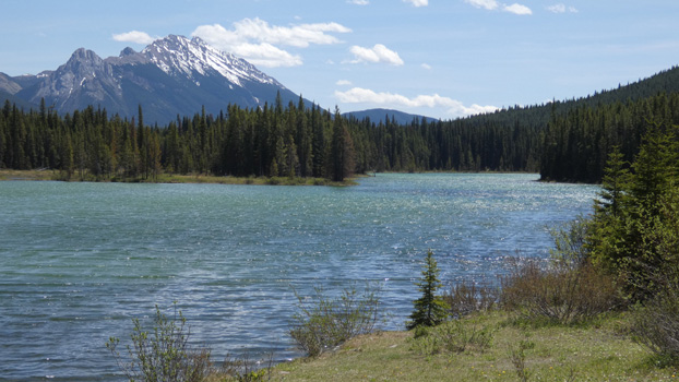 Wir werfen einen Blick in den nahen Horseshoe Canyon, dann geht es, an Calgary vorbei, direkt auf die Rocky Mountains zu. Kurz vor Canmore biegen wir nach Süden ab in den Kananaskis Country Park, wo es Seen, Wälder und Blick auf schneebedeckte Berge gibt und dazu dann und wann noch ein paar Dickhornschafe. Wegen der vielen Schilder, die auf Bären hinweisen, ist auch auf unseren kurzen Spaziergängen der Bärenspray mit dabei. Auf einer Schotterstraße geht es in einer großen Schleife zurück nach Canmore. Km 403/10.016/108.572.