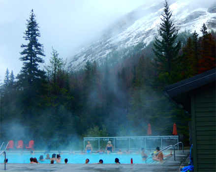 Wir haben Glück: Als der erste Zug vorbeirattert, ist es ohnehin Zeit zum Aufstehen. Bagger und LKW sind schon weg, die haben wir gar nicht gehört. Dafür schaut der Bär wieder vorbei. Das Wetter ist mies, dunkle Wolken hängen tief und immer wieder nieselt es. Es hat den ganzen Tag nur drei bis sieben Grad. Wir sehen uns die in der Nähe von Jasper gelegenen Patricia und Pyramid Lakes an, in ersterem befindet sich das Wrack eines Flugzeugträgers, was für einen kleinen See, tausende Kilometer vom Meer entfernt, doch irgendwie ungewöhnlich ist. Wer es nicht so recht glauben will, dass die Briten im zweiten Weltkrieg allen Ernstes einen Flugzeugträger aus Sägespänen und Eis bauen wollten, sollte einmal "Project Habbakuk" googeln. Durch viel toten Wald geht es vom Maligne Canyon, der von mehreren Brücken überspannt wird, zum Medicine Lake und weiter zum Maligne Lake. Die beiden je etwa 20 Kilometer langen Seen sollten vor der Kulisse schneebedeckter Berge türkis erstrahlen. Dass sich das nicht ausgeht, wenn von den Bergen kaum was zu sehen ist, versteht sich von selbst. Kurz vor dem Parkausgang befinden sich die Miette Hot Springs, wo wir ein Bad nehmen. Die Gegend ist vom Neuschnee von heute Nacht angezuckert, die Becken befinden sich im Freien und das Thermalwasser hat 38 bzw. 40 Grad. Herrlich! Die Bademeister tragen dicke Jacken, Hauben und Fäustlinge. Daneben gibt es noch zwei kleinere Becken mit 10 und 16 Grad, in denen man es echt nur kurz aushält. Kurz nach der Ausfahrt aus dem Nationalpark biegen wir in die Route 40 ein. Auf dem Wegweiser ist zu lesen: Scenic Route to Alaska. Das ist bemerkenswert, denn bis Alaska sind es noch 3.000 Kilometer. Das wird also ein paar Tage in Anspruch nehmen, wir sind ja im Urlaub und nicht auf der Flucht. Wir übernachten in dem Bergdorf Grande Cache neben einer insolventen Autowaschanlage. Km 418/11.246/109.802. Sonnenuntergang 22.23, Sonnenaufgang 5.26