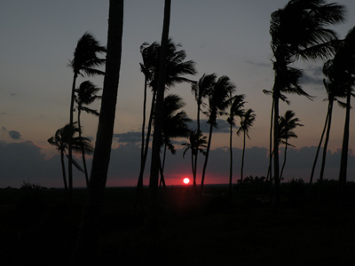 Dienstag, 10. Mai 11, Tag 24, Ilha de Mocamibque In Nampula kaufen wir ein paar Lebensmittel ein und fahren dann zügig Richtung Küste. Wir passieren einige schöne Kirchen, besonders auffällig ist allerdings die der Katholische Mission Sanctuario de Santa Maria Mae do Redentor. Und dann sind wir endlich am Meer. Der Indische Ozean besticht mit herrlich blauem Wasser, Palmen und weißem Sandstrand. Über eine dreieinhalb Kilometer lange schmale Brücke (Maut hin und zurück 10 Mt = 0,23 EUR) fahren wir auf die Ilha de Mocambique, deren Sehenswürdigkeiten wir ursprünglich zu Fuß erkunden wollten. Leider kann Susi heute praktisch nicht gehen, jeder Schritt verursacht ihr heftige Rheumaschmerzen. Und so sind wir froh, dass es fast keinen Verkehr gibt und die Gassen der Insel breit genug sind, so dass wir alles per Auto abfahren können. Während im südlichen Teil der Insel die vorwiegend aus Lehm gebauten Häuser stark dem Verfall preisgegeben sind, wurden im Norden die aus Stein gebauten kolonialen Bauten teilweise renoviert. Im Escondidinho essen wir ein Häppchen und genießen das ruhige und stimmungsvolle Ambiente. Über die Brücke geht es zurück auf's Festland und auf die Halbinsel Mossuril, wo wir am Ende der Landzunge direkt am weißen palmenbestandenen Sandstrand campieren. Ganz alleine. Es bleibt nur Zeit für ein schnelles Bad, dann geht idyllisch die Sonne unter. Als Nachspeise zur Abendjause essen wir unsere Ananas auf, die wir vor ein paar Tagen gekauft haben und die so groß war, dass wir tagelang davon essen konnten. Es ist ziemlich windig. An der nahen Lodge haben wir 150 Mt = 3,40 EUR an Gemeindeabgabe bezahlt, jedoch keinen Beleg erhalten. Km 276/5.661/49.203. |