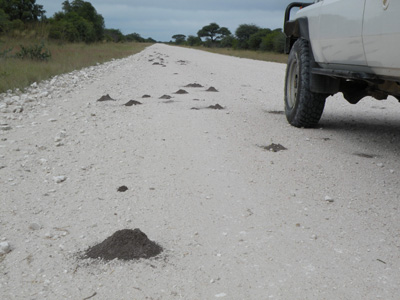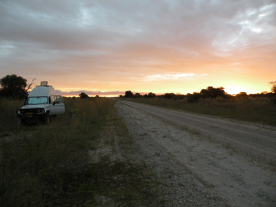 Dienstag, 19. April 11, Tag 3, Otjiwarongo Den Vormittag verbringen wir im Offroad-Center in Windhoek, wo der mitgebrachte neue Schnorchel eingebaut wird. Keine ganz einfache Sache, weil der mitgelieferte Luftschlauch nicht passt. Doch nach ein wenig Improvisation können wir zu Mittag Windhoek mit dem montierten Teil verlassen. Ein Stück außerhalb essen wir in einer etwas heruntergekommenen Lodge zu Mittag. Im Garten stehen Sitzgarnituren, bei der je zwei Bänke und ein Tisch zu einem Teil verbunden sind. Als ich mich niedersetze, kippt das Möbel und mein schon am Tisch stehendes Bier ergießt sich über Hemd und Hose. Noch bevor unsere bestellten Steaks erscheinen, fühle ich mich plötzlich unwohl, habe Kopfweh und Schweißausbrüche. Was wir dann auf unseren Tellern vorfinden, ist eher Leder als Fleisch, die Pommes sind nicht durch und dem Salat trauen wir ohnehin nicht. Während Susi doch etwas isst, rühre ich mein "Essen" nicht an, denn ich fühle mich auch ohne es elend. Wir fahren weiter nach Norden, doch nach kurzer Zeit kann ich nicht mehr. Ich fühle mich erschöpft und todmüde. Wir machen eine Pause und legen uns aufs Ohr. Danach fühle ich mich sehr viel besser und esse sogar eine von Sabines Wurstsemmeln. Auf der Weiterfahrt regnet es zeitweise wieder aus schwarzen Wolken. Am Abend erreichen wir Otjiwarongo, wo ich mich für ein Steak und ein nachfolgendes Eis mit Karamellsauce wieder gesund genug fühle. Wir übernachten auf dem Acacia-Camp mitten im Ort (S20 27.935 E16 39.247, 65 NAD = 7 EUR p.P.), an eine Übernachtung im Busch ist ohnehin nicht zu denken wegen der allgegenwärtigen Zäune. Km 275/345/43.787. Mittwoch, 20. April 11, Tag 4, Grootfontein Früh ins Bett und früh auf lautet die Devise, wenn die Sonne um 5.50 auf- und um 17. 20 untergeht. Nach dem Frühstück bastle ich ein Verlängerungskabel für unser neues GPS-Gerät, dessen Kabel zu kurz ist, um die Steckdose zu erreichen. Dann wechsle ich noch die kaputte Jalousie der Dachluke aus, womit wir auch die sperrige Verpackung der Ersatzjalousie los sind. Auf eintöniger Asphaltstraße geht es nach Otavi. Erst dann bieten Mais- und Sonnenblumenfelder ein wenig Abwechslung zum Buschland. In Grootfontein finden wir nach langem Suchen ein Internetcafe (S19 33.804 E18 06.227), essen in einem kleinen holländischen Lokal zu Mittag und tanken (wer weiß, ob wir auf den 350 Kilometern bis zur Grenze noch Sprit kriegen?). Ca. 40 Kilometer nach Grootfontein verlassen wir die Asphaltstraße und biegen nach Osten auf die Piste nach Tsumkwe ab, bis wohin fast durchwegs gut 100 km/h möglich sind. Es geht durch ödes Buschland und nur sehr wenige Fahrzeuge kommen uns entgegen. Nach 21 Kilometern soll eine Veterinärkontrolle kommen, weshalb Susi sicherheitshalber unseren Tiroler Speck aus dem Kühlschrank räumt. Üblicherweise werden nur Fahrzeuge kontrolliert, die aus Wildgebieten in Weidegebiete fahren, aber man kann nie wissen. Die Kontrollstelle ist unbesetzt und nach weiteren gut 10 Kilometern räumt Susi den Speck wieder in den Kühlschrank. Unglaublich, aber nach einem weitern Kilometer kommt die Kontrolle. Wir verwickeln den Beamten in ein nettes Gespräch und er interessiert sich mehr für die Kälte in Österreich als für unseren Kühlschrank. Von hier an gibt es keine Zäune mehr und das Buschland ist völlig verändert: War bisher das Gelände von dicht stehenden, etwa gleich hochen Büschen bedeckt, zwischen denen fallweise Kühe weideten, gibt es von nun an weit auseinander stehende Bäume und dazwischen sehr niedrige Büsche. Wir befinden uns hier im Reservat der San, die periodisch den Busch abbrennen. Immer wieder sehen wir Termitenhügel auf der Straße, oft ganz kleine, dann und wann aber auch so große, dass sie ein Hindernis für Fahrzeuge darstellen. In Tsumkwe gibt es in der Tat keinen Treibstoff (der Tankwagen kommt nächste Woche) und wir sind froh, dass wir in Grootfontein vollgetankt haben. Die letzten 40 Kilometer bis zur Grenze ist die Piste schmal und nicht mehr so gut. Heute war es ganzen Tag bedeckt, wir haben kaum einmal die Sonne gesehen, doch geregnet hat es auch nicht. Außer Kühen auf der Weide haben wir heute nur ein paar Perlhühner und einige Hyänen gesehen. Wir übernachten ca. 15 Kilometer vor der Grenze zu Botswana direkt neben der Piste; der Busch ist beidseits der Piste dicht und der Boden feucht. Wir rechnen nicht damit, dass uns hier jemand stört, denn der Grenzübergang ist von 17 bis 7.30 geschlossen und woanders kommt man auf der Piste nicht hin. Km 534/879/44.321. Donnerstag, 21. April 11, Tag 5, Drotsky-Cave Die zum Grenzübergang führende Straße hat die Dimension eines Feldweges, auch die Grenzstelle (S19 34.703 E20 59.770) ist recht einfach: Es gibt keinen Strom, geschweige denn einen Computer. Man protokolliert unsere Ausreise in einem Buch, stempelt die Pässe und macht, eher aus Neugierde als zur Eindämmung von Seuchen - wir reisen schließlich aus, einen Blick in den Kühlschrank. Die Road-Tax wird nicht kontrolliert. Nach 20 Minuten geht's hinüber ... |