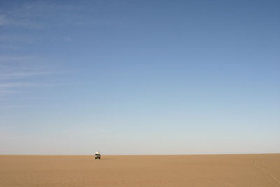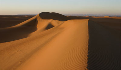 17, Selima Sand Sheet Von nun an geht es Richtung Nordosten, weiter auf den unendlichen Sandflächen des Selima-Sand-Sheet. Als wir zu Mittag die Asphaltstraße von East Uweinat nach Dakhla erreichen, hören wir ein zumindest zweistimmiges erleichtertes "Endlich". Susi und ich finden es sehr schade, dass der Ausflug ins Gilf Kebir schon aus ist. Es hätte noch viel zu entdecken gegeben. Da uns auch die bisher gesehenen Oasen sehr gefallen haben, ist ohnehin ein Wiederkommen vorprogrammiert. Wir haben übrigens seit Verlassen der Asphaltstraße vor 5 Tagen außer einer Reisegruppe keine Menschenseele getroffen und außer einem Fennek, einigen Schmetterlingen und mehreren Heuschrecken keine Tiere. Hier wächst nichts, es gibt keinen Grashalm, keinen Busch, keinen Baum, daher keine Kamele, keine Ziegen, nichts. Km 448/.6.011. |