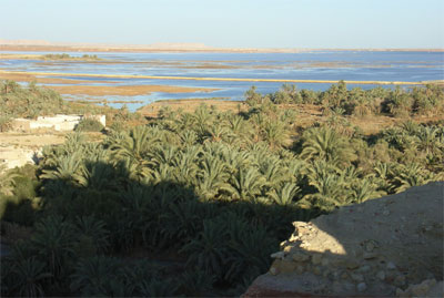 Auf Ägyptischer Seite ist alles sehr viel komplizierter und bürokratischer. Man darf schließlich nicht vergessen, dass die Ägypter das Papier erfunden haben! Zuerst füllen wir ein Formular mit unseren Daten aus, dann müssen wir Geld wechseln. Da heute Freitag ist und die Bank geschlossen hat, tauscht man auf der Straße. Der Mann, der uns das Geld wechselt, bietet sich auch als Helfer durch die Grenzformalitäten an. Wir handeln einen Preis für seine Hilfe von 50 LE (6,67 EUR) je Fahrzeug aus, eine Ausgabe, die sich jedenfalls lohnt, denn er kennt die vielen Wege, die in einer bestimmten Reihenfolge zu absolvieren sind: Passkontrolle bei der Polizei, Blick ins Auto durch den Zoll, Zollstempel, Registrierung der Fahrgestell- und Motornummer, Kopierbüro, Carnetbüro, Amtskasse, neuerlich Carnetbüro, Versicherungsbüre, Traffic-office, nochmals Carnetbüro, neuerlich Traffic-office, wo uns die Nummernschilder und die Fahrbewilligungen ausgehändigt werden. Am längsten dauert bei uns die Sache mit den Fahrgestell- und Motornummern. Die Nummern werden nämlich von den Stellen, wo sie ins Fahrgestell bzw. in den Motorblock eingestanzt sind, auf ein Formular gerubbelt. Das geht normal ganz schnell, wenn bekannt ist, wo die Nummern sind. Da wir auf die Sache natürlich vorbereitet sind, wissen wir, wo bei unseren Landcruisern die Fahrgestellnummern sind, und dass die Motornummern nicht zugänglich sind. Das glaubt man uns aber nicht und ewig lange suchen der Rubbler und ein Ingenieur vergebens nach den Motornummern. Endlich kommt Plan B: Die Motoren werden verplombt. Bei Ingrid und Gerds Auto ist es gerade anders rum: Die Motornummer ist rasch gefunden, die Fahrgestellnummer unauffindbar. Hier werden gemäß Plan B die letzten Ziffern der Fahrgestellnummer in die B-Säule gestanzt. Ebenfalls sehr lange dauert die Sache mit den Carnets, weil in dem allgemeinen Durcheinander auf den Schreibtischen Papiere verschiedener Fahrzeuge zusammengeheftet werden und ich gegen Ende der Prozedur nochmals an den Start muss. Alles in allem dauert der Grenzübertritt, tunesische Seite miteingerechnet, fünfeinhalb Stunden und kostet 1.260 LE, 168 EUR. Ich lasse mir nun noch von einem Beamten unsere Autonummern in unserer Schrift aufschreiben, schicke sie später unserem Führer ins Gilf per SMS, damit die Bewilligung für das Befahren der libyschen Wüste fertig sind, wenn wir morgen in Siwa eintreffen. Es wird bereits dunkel, als wir von der Grenze wegfahren. Sehr beeindruckend ist der Blick von der Hochebene hinunter auf den Grenzort Solloum, sehr steil und kurvig die Straße. Etwas außerhalb von Solloum wollen wir übernachten. Doch wir haben auf die ägyptische Polizei vergessen, die sich so um uns sorgt, dass sie uns zum Übernachten direkt am Posten bei der Stadtausfahrt in Solloum "einlädt". Km 206/3.071. Samstag, 1. Dezember 7, Tag 9, SiwaGleich in der Früh kündigt uns die Polizei ihre Begleitung an. Bis Marsa Matruh oder gar bis Siwa? Alles unklar. Als wir dann um 7 Uhr starten, ist ohnehin wieder alles anders und wir können alleine fahren. Zwischen Matruh und Siwa kommt uns aber ein Polizeifahrzeug entgegen, das wendet und uns über mehr als 100 Kilometer begleitet. Heute ist es beinahe wolkenlos und die Luft ist sehr klar. Die Landschaft ist bis Siwa total abwechslungslos, einfach nur eben. Erst zu Mittag, ganz kurz vor Siwa, als wir in die Depression hinunterfahren, wird es anders, direkt spektakulär: Zeugen- und Tafelberge säumen den Geländeabbruch. Hier wird auch in großen Mengen Kalkstein abgebaut, Muschelzeichnungen in den herumliegenden Steinen bezeugen den fossilen Ursprung. Innerhalb der Depression erheben sich aus einem Gemisch von braunen Häusern und grünen Palmenhainen mehrere Berge. Sofort finden wir das Hotel Arouz, das als Treffpunkt mit unserem Führer für die nächsten Tage vereinbart ist. Da er noch nicht da ist, rufen wir ihn an und innerhalb weniger Minuten fährt er vor, mit einem weißen Buschtaxi versteht sich. Hat sogar dasselbe Baujahr wie unsere! Unser Führer heißt Mahmoud und wir finden ihn sofort sehr sympathisch. Beim Mittagessen besprechen wir unsere weiteren Pläne. Wir besichtigen die sehr eindrucksvolle und auf einem Hügel gelegene Altstadt, von der man einen recht schönen Blick auf die Oase hat. Der Orakeltempel hingegen ist wenig spektakulär. Wir besuchen auch das Kleopatrabad, eine warme Quelle, in der man schwimmen kann. Als wir die Autos aufgetankt, Luft abgelassen und den vorgeschriebenen Militäroffizier aufgenommen haben, ist es schon dunkel und wir fahren nur ein kurzes Stück hinaus in die Sandwüste, wo wir campieren. Mahmoud kocht Gemüsesuppe, die ausgezeichnet schmeckt, und serviert Obst als Nachtisch. Besonders schmecken uns die Guavas, grüne birnenförmige Früchte. Diesel in Ägypten 0,75 LE = 0,10 EUR. Km 505/3.576. Sonntag, 2. Dezember 7, Tag 10, Great SandseaNun geht es nach Süden, hinein in die Große Sandsee. Wir fühlen uns sofort wieder "daheim" und genießen die Fahrt zwischen den Nord-Süd verlaufenden Dünenzügen. Es sind mehrere sehr steile und teils auch lange Dünenabfahrten zu bewältigen. Außer der tollen Landschaft gibt es nicht viel zu sehen, nur die "russische Quelle", die wir zu Mittag erreichen, und das Wrack eines LKW aus dem zweiten Weltkrieg. Die abgestürzte Messerschmidt nahe der russischen Quelle finden wir nicht an den von einem Bekannten erhaltenen Koordinaten. Kurz vor der weißen Wüste übernachten wir in einer Dünensenke. Ganzen Tag war es heute klar, auch in der Nacht verdeckt keine Wolke den Sternenhimmel. Leider müssen wir heute feststellen, dass unser Satellitentelefon kaputt ist. Wir können daher nicht mehr täglich eine Nachricht auf den Ticker der Homepage schicken. Das geht nur mehr, wo ein GSM-Netz verfügbar ist, mit unserem normalen Handy, also in den größeren Oasen, nicht jedoch während unseres Ausflugs ins Gilf Kebir. Ein weiters Problem sorgt mich: Unser Notebook lässt s