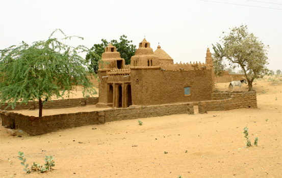 Am Vormittag kämpfen wir mit dem schlechtesten Abschnitt der Asphaltstraße von Agadez nach Niamey: Unzählige riesige Schlaglöcher machen ein schnelles Vorankommen unmöglich. Manchmal ist es sogar besser, neben der Straße zu fahren. In Abalak, einem chaotischen Straßendorf, wollen wir in einem Restaurant zu Mittag essen. Kaum aus dem Auto, werden wir schon von vielen Menschen umringt, jeder will uns etwas verkaufen oder uns in einen Laden zerren. Wir kämpfen uns ins Restaurant durch, werden komischerweise dort zunächst ignoriert, bestellen dann gegrilltes Schaffleisch, das in winzigen, dafür teuren Portionen bei Tisch einlangt. Nun folgen die obligaten Verhandlungen über den Preis (obwohl schon bei der Bestellung vereinbart) und schließlich das Abschütteln all der Aufpasser, die unsere Fahrzeuge bewacht haben, und all derer, die ein Geschenk wollen. In Tabalak überqueren wir auf einem Damm einen großen See, an dem Menschen baden, Wäsche gewaschen wird und Tiere getränkt werden. Rings herum sprießt es grün auf Feldern und in Gärten. In den Dörfern an der Straße gibt es zahlreiche Getreidespeicher. Leider ist es schon den ganzen Tag nebelig. In Tahoua verlassen wir die Mautstraße, weil wir über Teberat und Abala nach Mali wollen. Gleich bei der Einfahrt in Tahoua haben wir eine Verkehrskontrolle, bei der der Polizist auch unser Feuille de Route sehen will. Da wir aber in Agadez keines bekommen haben und das aus Dirkou nur bis Agadez gültig war, stellen wir uns dumm, verstehen zudem kein Französisch und zeigen dem Polizisten solange alle möglichen anderen Papiere bis ihm die Geduld reißt und er uns ohne dem Papier fahren lässt. Da aber weitere Polizeikontrollen bis zur Grenze nicht ausgeschlossen sind, verlängern wir unser Feuille de Route aus Dirkou bis zur malischen Grenze. Als Stempel verwenden wir eine Münze; insgesamt sieht die Fälschung nicht so schlecht aus. Da die Ausfahrt aus Tahoua Richtung Tabaram (Teberat) nur schwer zu finden ist und Einheimische sehr widersprüchliche Auskünfte geben, führe ich hier einige Punkte an, die hilfreich sein könnten: N14 53.512 E5 15.423, N14 53.396 E5 15.419, N14 53.276 E5 15.309, N14 53.217 E5 15.327 und N14 52.313 E5 13.553. Dieselpreis in Tahoua 539 CFA (0,83 EUR). Km 377/5.908.