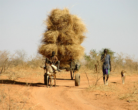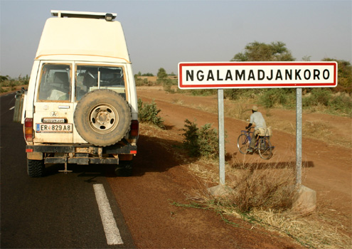 In Soko verlassen wir das Binnendelta. Ganzen Tag fahren wir auf Eselspfaden durch Savannenlandschaften und kommen am Abend in Nara an, wo wir die Ausreiseformalitäten erledigen: Die Gendarmerie befindet sich am südlichen Ortseingang (N15 09.245 W7 17.939), der Zoll am nördlichen Ortsrand (N15 10.751 W7 16.837). Gleich neben dem Zollamt liegt eine Herberge, deren Inhaber sehr geschäftstüchtig ist: Er drängt uns nicht nur, bei ihm zu übernachten, sondern wechselt auch (zu schlechtem Kurs) Geld und verkauft Treibstoff. Km 261/8.285.