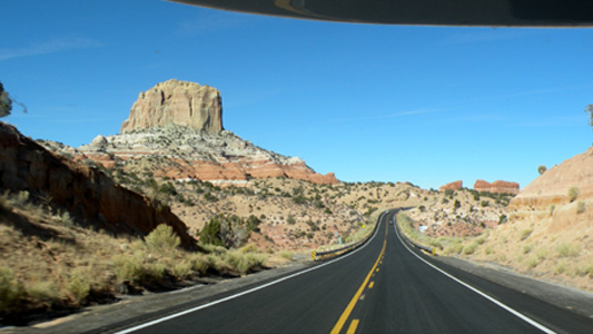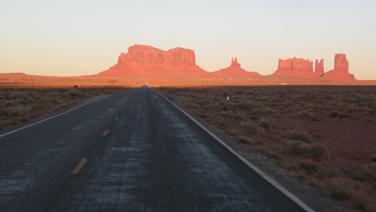 Am Vormittag besichtigen wir das National Monument der Navajo-Indianer. Über ein malerisches Tal blicken wir auf die in einer riesigen Felsnische gelegenen Reste einer vorkolumbianischer Siedlung. Den Nachmittag verbringen wir vor der großartigen Kulisse der Felstürme des Monument Valley. Wir können uns gar nicht sattsehen und fahren erst ab, als mit der Dämmerung die Kälte kommt. Mi 173/730.