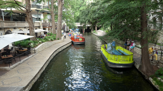 In San Antonio sehen wir uns als erstes The Alamo an. Es ist ein eher unscheinbares Gebäude eines ehemaligen Forts, das im Krieg gegen die Mexikaner von den Texanern vergeblich zu halten versucht wurde. Die Räume sind leer und es gibt kaum etwas zu sehen, aber es pilgern massenhaft Amis hierher, hat wohl etwas mit Nationalstolz zu tun. Wir sehen uns noch die San Fernando Cathedral an und spazieren dann den River Walk am Ufer des San Antonio River entlang. Der schmale Fluss windet sich in engen Kurven durch die Stadt, beidseits ist Fußgängerzone mit unzähligen Lokalen, und das alles gut ein Stockwerk unter der übrigen Stadt. Wir machen eine kurzweilige Bootsfahrt, die vom Kapitän humorvoll kommentiert wird. Am Stadtrand hat man in einem aufgelassenen Steinbruch eine hübsche grüne Oase geschaffen, den Chinese Tea Garden. Auf dem Weg nach Austin halten wir in Wimberley, der "Stiefelhauptstadt" der USA. Hier kann man die typischen Texasstiefel kaufen und vor den Geschäften stehen mannshohe Stiefel in den buntesten Farben. In Austin, der Hauptstadt Texas', ist es so heiß, dass wir uns zur Abkühlung das klimatisierte Kapitol ansehen. Bei Sonnenuntergang machen wir eine Bootsfahrt auf dem eher an einen Fluss erinnernden Lady Bird Lake, sehen uns die hübsche Skyline vor dem See an und warten auf das Ausfliegen der Fledermäuse. In Spalten der Congress Avenue Bridge leben 1,5 Milionen Fledermäuse, die jeden Abend gleichzeitig zur Futtersuche ausfliegen. Was für ein Spektakel! Wir übernachten auf einer Wiese neben dem See. Da die Fledermäuse täglich über zehn Tonnen Insekten futtern, gibt es erwartungsgemäß so gut wie keine Stechmücken. Km 269/3.591/147.207.