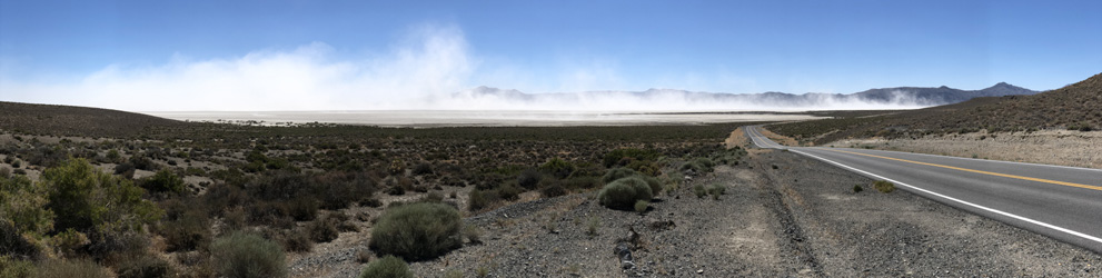 Das Wasser des Lake Tahoe ist kristallklar, am liebsten würde man hineinspringen, doch es ist ein Gebirgssee, sein Wasser ist ungemütlich kalt, in der Ferne sieht man noch Schnee auf den Gipfeln der Sierra Nevada. Wir passieren die Grenze zu Nevada und schon gibt es die ersten Casinos. In Carson City, der unscheinbaren Hauptstadt Nevadas, frischen wir unsere Vorräte auf. Zu Mittag machen wir Halt in Virginia City, einer der authentischsten Westernstädte, die wir kennen. Am Wochenende laufen hier Leute, die gerne mal einen Tag oder zwei in der Vergangenheit leben möchten, in historischen Kostümen herum, so manch einer hat einen Colt umgeschnallt oder trägt eine Winchester, die Ladies tragen Petticoats, in den Saloons spielt Live-Musik (gesehen 2012). Leider nur am Wochenende. Über Reno geht es zum Pyramid Lake, einem 40 Kilometer langen, in der Wüste Nord-Nevadas gelegenen See. Im Gegensatz zum bewaldeten Lake Tahoe gibt es hier kaum Bewuchs. Im See scheinen Fische zu leben, denn es gibt Möwen und Pelikane. Die Wassertemperatur liegt vermutlich über 20 Grad, ein Bad ist eine herrliche Abkühlung von der Hitze des Tages, 33 Grad. Wir übernachten abseits der Straße nach Gerlach neben eigenartigen Gesteinsformationen. Km 289/12.609/156.225.