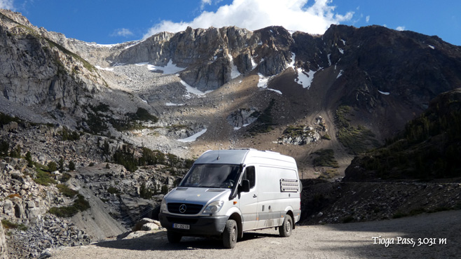 Um 5.15 ist Tagwache, um dreiviertel sechs fahren wir in den Nationalpark, erstaunlich wenige andere tun das auch um diese Zeit. Das Herzstück des Nationalparks ist das Yosemite Valley, ein grünes Tal inmitten von Bergen, überragt von riesigen Felsen, etwa dem bekannten "El Capitan". Es ist nicht so überlaufen, wie befürchtet, das wird wohl am gestrigen Feiertag anders gewesen sein. Wir wandern zum Mirror Lake und zu den Yosemite Falls, den mit 740 Metern Höhe höchsten Wasserfällen Nordamerikas. Jetzt im Sommer führen sie nur wenig Wasser und sehen nicht wahnsinnig imposant aus. Eine etwa 70 Kilometer lange, landschaftlich höchst beeindruckende Straße führt mit wenig Steigung zum 3.031 Meter hohen Tioga-Pass. Die Berge bestehen zum Großteil aus hellem, fast weißem Granit und sehen völlig irreal aus. Wir passieren mehrere Seen, dazwischen gibt es grüne Bergwiesen, es ist wunderschön. Von der Passhöhe geht es ziemlich steil tausend Meter hinunter ins Mono Basin, in dem sich der Mono Lake befindet, ein Natronsee, an dessen Südufer sich bizarr geformte Tuffsteinsäulen befinden. Wir übernachten unweit davon mit Blick auf den See. Km 207/12.023/155.639.
