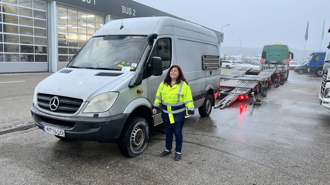 In aller Früh fahre ich nach Linz, wo heute der Zerberus ankommt. Im linken Vorderreifen fehlt wieder Luft, der Batteriekasten im Führerhaus wurde geöffnet, wahrscheinlich musste die Batterie geladen werden, sonst scheint alles in Ordnung zu sein auf den ersten Blick. Es gibt keine Einbruchspuren, die Siegel an den Türen sind unversehrt.