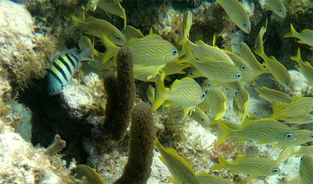 Wir hängen faul herum, genießen die belizische/karibische/kreolische Küche und sehen beim Füttern der Rochen am Strand zu. Geduldige entdecken auch das eine oder andere Seepferdchen im seichten Wasser.