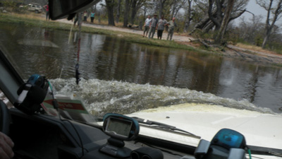 Dienstag, 28. September 10, Tag 13, Moremi-Nationalpark, Okavango-Delta Was für eine Nacht! Kurz nach Mitternacht erwache ich mit heftigen Bauchkrämpfen und erreiche nur mit Mühe die Buschtoilette, wo ich einen kalten Schweißausbruch am ganzen Körper kriege und kollabiere. Sabine kümmert sich rührend um mich. Nach einer Stunde ist alles vorbei, ich habe keine Schmerzen mehr, bin frisch geduscht und habe schon viel getrunken. Sabine hat es auch erwischt, aber ein wenig anders: Erst in der Früh, als wir bereits in Richtung Moremi-Nationalpark gestartet sind, klagt sie über Übelkeit. Sie hat trotz schon fast 30 Grad Außentemperatur Schüttelfrost und kurz darauf Fieber. Endlich Gelegenheit zur Revanche: Ich kümmere mich rührend um sie. Sie kriegt zwei Pillen aus dem Arzneikoffer und ist zu Mittag wieder die alte. In der Zwischenzeit kämpfe ich mit der Orientierung. Der Abzweig der nach Westen führenden Moremi-Piste war zwar einwandfrei markiert, endet jedoch kurz nach der Querung (S19 07.354 E23 52.935) einer breiten Nord-Süd-Piste im Nichts. Nach einigen Versuchen, Spuren zu finden, retten wir uns mit Hilfe unseres GPS-Gerätes (ohne ihm wären wir hier garantiert lange herumgeirrt) zurück auf die Nord-Süd-Piste, der wir nach Süden, der wahrscheinlicheren Richtung, folgen. Nach 200 Metern finden wir auch schon einen Abzweig (S19 07.697 E23 52.940) nach Westen mit einer riesigen Tafel "Moremi North Gate 20 km". Doch nach kurzer Fahrt endet die Piste im Sumpf. Vielleicht sollte ich an dieser Stelle erwähnen, dass der Moremi-Nationalpark das Herzstück des Okavango-Deltas ist. Erstaunlicher Weise sind gerade jetzt am Ende der Trockenzeit die Wasserstände im Delta besonders hoch. Glücklicher Weise treffen wir einen Safariwagen, dessen Fahrer uns die Ausweichpiste beschreibt. Also zurück auf die Nord-Süd-Piste, auf dieser drei bis vier Kilometer nach Norden (S19 06.055 E23 52.937) und dann nach Westen abbiegen. Auf einer recht guten Piste brausen wir dem Gate zu und überqueren kurz vor dem Khwai-Village eine große Brücke. Dann ist es mehrmals wieder sehr schwierig, einen Weg zu finden, der nicht im Schlamm endet. Zu guter Letzt wagen wir uns in eine überflutete Passage, die so tief ist, dass die gesamte Motorhaube eintaucht. Das beste kommt aber noch an der Einfahrt ins Khwai-Village: Hier ist ein Fluss zu queren, dessen Passage mit zwei Stangen markier ist. Es gibt auch Spuren von Fahrzeugen, die hier durchgefahren sind. Also wagen wir uns unter Verwendung aller erdenklichen Allrad-Hebel in den Fluss, der so tief ist, dass das Wasser durch das blöderweise offene Seitenfenster hereinschwappt. Trotz dem Schrecken, den wir kriegen, nehme ich den Fuß nicht vom Gaspedal, sondern drücke es weiter fest durch. Unser Buschtaxi macht seinem Namen alle Ehre und bringt uns, wenn schon nicht trocken, so doch gut ans andere Ufer. Kurz nach dem Dorf fahren wir durch das North-Gate (S19 10.200 E23 45.010) in den Park, zwei Stunden später als wir gedacht haben. Wir machen nun eine Fahrt über den wie eine Halbinsel ins Delta ragenden Teil des Parks. Zunächst sind immer wieder Wege nicht passierbar, enden im Wasser. Es bietet sich aber oft die Gelegenheit, die grüne Überflutungslandschaft zu bestaunen. Hier finden sich zudem auch viele Tiere, darunter auch einige Flusspferde. Nach einiger Zeit treffen wir auf eine Gruppe Polen, die mit ihren gemieteten Geländewagen ratlos am anderen Ufer einer überfluteten Passage stehen. Einer watet im Wasser herum, kommt dann auf uns zu und fragt uns, ob wir wissen, wo man da drum rum fahren kann. Ich meine, man kann da wohl durchfahren, wenn das Wasser nicht mal bis zum Schritt geht. Und weil wir ohnehin auf deren Seite wollen, fahren wir einfach durch. Da bleiben denen die Münder offen stehen und langsam traut sich ein Fahrer nach dem anderen auch durch. Witzigerweise sind die Passagiere aber nicht sehr mutig, die waten lieber durch das Wasser, als dass sie mitfahren. Auf der weiteren Fahrt gibt es noch einige Brücken zu passieren, wobei die eine so tief gelegen ist, dass das Auto doch ganz schön nass wird und die andere so wenig vertrauenserweckend ist, dass wir lieber neben ihr durchs Wasser fahren. Im südlichen Parkteil, der sehr herbstlich wirkt, weil die Bäume jetzt am Ende der Trockenzeit ihre Blätter abwerfen und viel Laub am Boden liegt, gibt es nur wenige Tiere zu sehen. Wir verlassen den Park durch das Süd-Gate (S19 25.540 E23 38.730), wo wir nachträglich Eintritt bezahlen (120 BWP = 13,28 EUR p.P. + 50 BWP = 5,50 EUR für's Auto) und übernachten kurz danach im Busch. Bei der Durchsicht der heute geschossenen Fotos fällt uns auf, dass wir unser vorderes Kennzeichen verloren haben, vermutlich bei einer der Wasserdurchfahrten. Km 179/3.480/39.945. |