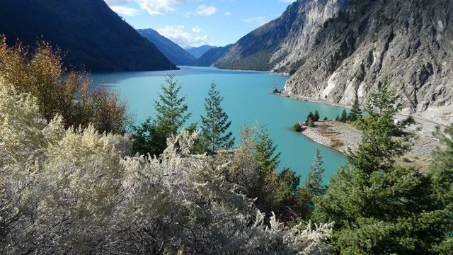 Nach den regnerischen letzten Tagen zeigt sich heute die Sonne und das Thermometer klettert auf unerwartete 18 Grad. Die Orte am Highway 97 haben so einfallsreiche Namen wie 150 Mile House, 105 Mile House, 70 Mile House und so weiter. Nach Clinton biegen wir in die Route 99 ein, die über die Ausläufer der Coast Mountains nach Vancouver führt. Die Gegend ist wunderschön, die Wiesen sind noch grün, sogar manche Bäume haben noch grüne Blätter. Dann kommen die Berge, deren Bewuchs ist spärlich, die Flüsse haben tiefe Canyons in den Sandstein gegraben. Nach Lillooet, das an einem türkisblauen Stausee liegt, wird die Straße kurvig und überwindet mehrere Pässe und die Berge bekommen nun alpinen Charakter. In Whistler, einer Kleinstadt mit etwa 12.000 Einwohnern, die Sportfans von den olympischen Winterspielen 2010 bekannt ist, wimmelt es nur so von Ausflüglern und Wanderern und aus den vielen aufgebrezelten jungen Leuten zu schließen, dürfte es auch eine größere Partymeile hier geben. Spektakulär ist die Peak2peak Gondola, eine Seilbahn, die zwei vier Kilometer voneinander entfernte Bergesgipfel - quer über ein tief eingeschnittenes Tal - miteinander verbindet. Den Spaß einer Fahrt mit einer dieser Gondeln mit Glasboden lassen wir uns entgehen, er ist uns schlicht zu teuer. Km 526/10.354/122.959.