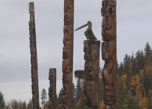 Auf dem Cassier Highway geht es weiter nach Süden. In Gitanyow, kurz vor der Einmündung in den Yellowhead Highway, gibt es gut ein Dutzend alter Totempfähle zu sehen. Wir übernachten in Hazelton im Provincial Park. Km 356/9.215/121.820.