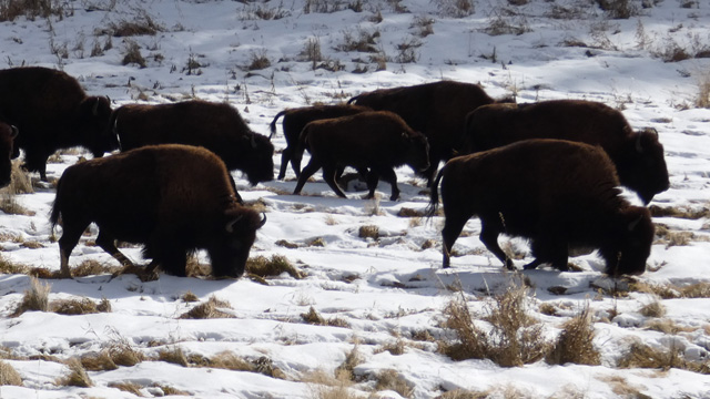 In Jackson, einem Ort am Südende des Grand Teton Nationalparks, bringe ich mein Notebook in die Computer-Klinik und erfreulicherweise kann es rasch wiederbelebt werden. Wir halten kurz am Wildlife Art Center, wo Totempfähle aus Bronze und andere Skulpturen ausgestellt sind, und fahren wieder die in der Vormittagssonne besonders schönen Teton Mountains entlang zurück in den Yellowstone Nationalpark, dessen östlichen Teil wir uns nun ansehen. Neben kleinen Geysiren, Fumarolen und kochenden Schlammlöchern gibt es auch eine Menge Tiere zu sehen, etwa Bisons, Wapitis, Elche, Bären und Füchse. Dort, wo der Yellowstone River in zwei hohen Wasserfällen in die Tiefe stürzt und in der Folge einen Canyon bildet, kann man von beiden Seiten auf die Fälle und die Schlucht schauen. Auf der Weiterfahrt liegt links der Straße ein kleiner See, rechts ist eine mehrere Meter hohe, steile Böschung, darüber ist Wald. Da kommt plötzlich ein Bison die Böschung herunter-, halb -gerutscht, halb -gesprungen, und springt uns direkt vor's Auto. Mit einer Vollbremsung kann ich eine Kollision ganz knapp verhindern. Ein weiteres tierisches Erlebnis haben wir an unserem Nachtplatz am Rande eines Waldes, schon außerhalb des Parks. Es ist schon stockdunkel und wir erledigen gerade den Abwasch, da hören wir Schritte rund um's Auto, dann wird unser Fahrzeug sogar hin- und hergewackelt. Leider sind unsere Fenster so angelaufen, dass wir draußen nichts erkennen können. Zuerst denken wir, da will sich jemand einen Spaß mit uns erlauben, doch dann ist uns ziemlich klar, dass das nur ein Bär gewesen sein kann. Und zwar einer von der großen Sorte, wenn er das ganze Wohnmobil schaukeln kann. Wir sind schon gespannt, welche Spuren wir morgen sehen werden, der Boden schien uns jedenfalls recht weich. Km 322/14.153/126.758.