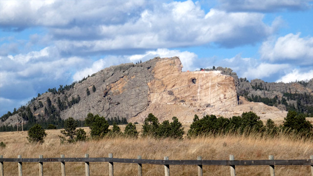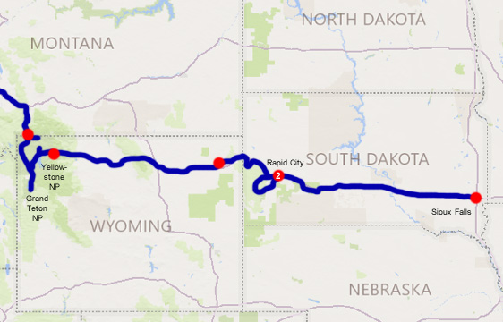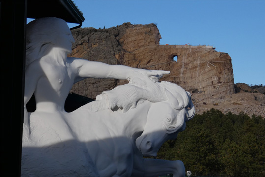Im Zentrum von Rapid City stehen an den Straßenkreuzungen lebensgroße Bronze-Statuen aller 44 Ex-US-Präsidenten. Sehr nett! Heute steht eine Rundfahrt durch die östlichen Black Hills auf dem Programm. Absolutes Highlight ist der Mount Rushmore mit den weithin sichtbaren, riesigen Präsidentenbüsten. In einem Gebäude in der Nähe ist das 1:12-Modell ausgestellt, nach dem das Denkmal errichtet wurde, das übrigens unvollendet geblieben ist, wie der Vergleich zeigt. Noch viel größer als alle vier Präsidentenstatuen zusammen ist das bei uns weitgehend unbekannte und ebenfalls in den Black Hills gelegene Crazy Horse Memorial. Es soll nach seiner Fertigstellung den Sioux-Häuptling auf einem Pferd sitzend zeigen und das größte Denkmal der Welt werden. 1998 wurde nach 50-jähriger (!) Bauzeit aber erst das Gesicht vollendet. Nun ist auch schon der horizontal ausgestreckte Arm zu erkennen. Am Abend sind wir wieder zurück in Rapid City, denn wir haben einen Termin in einer Werkstatt. Die haben Montag bis Sonntag von sechs bis 23 Uhr geöffnet! Endlich kriegen wir die Bremsbeläge gewechselt, unangenehmerweise verschwindet aber die Bremskontrollleuchte nicht. Und auch einen Reset des Motorsteuergerätes können sie nicht durchführen. Km 219/15.228/127.834.