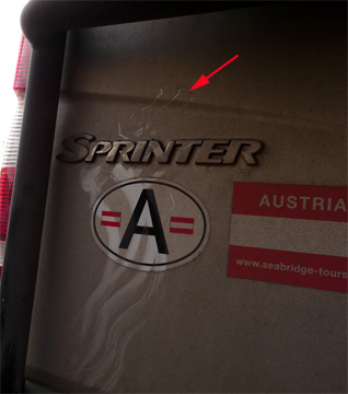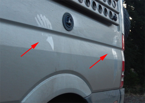 Leider gibt es keine Bärenspuren rund um's Auto. Aber auf dem Auto! Da der Zerberus den Schmutz von vielen Straßen auf sich trägt, sieht man sehr genau, wo ihn der Bär gestreichelt hat. An drei Seiten des Fahrzeuges sieht man Spuren von Pfoten mit fünf Fingern und ebensovielen Krallen. Die Pfotenabdrücke sind wenig größer als eine Menschenhand und befinden sich maximal 1,20 Meter über dem Boden, stammen daher mit Sicherheit von einem oder mehreren Braunbären. Der Winter ist uns dicht auf den Fersen. Für morgen sind im Yellowstone-Gebiet ein Temperatursturz und starke Schneefälle vorhergesagt. Wer weiß, welche Pässe dann noch passierbar wären. Den ganzen Tag geht es heute ostwärts. Ab Cody, der Heimatstadt von Buffalo Bill, gibt es starken Föhn, der Wind erschwert das Fahren, wenn er von der Seite kommt. Dafür haben wir am Nachmittag 26 Grad und die kurze Hose wird ausgegraben. Dann und wann überqueren wir eine Kette der Rockies, dazwischen liegen Prärien. Die scheinen zwar beinahe unendlich weit, werden aber als Viehweiden genutzt und sind eingezäunt. Einfach ein paar Kilometer im rechten Winkel von der Straße weggefahren und Nachtlager aufgeschlagen, das ging in Afrika, hier leider nicht. Wir übernachten daher auf einem Campingplatz im Keyhole State Park bei Moorcroft. Km 560/14.713/127.318.