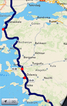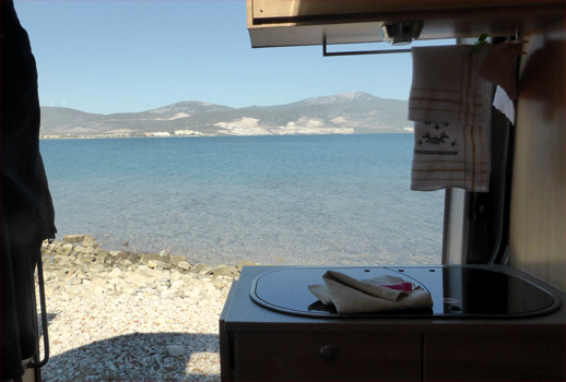 Gestern Abend hab ich mich mit einer zusätzlichen Decke zugedeckt, um nicht wieder zu frieren. Aber anfangs war's halt noch nicht so kalt und ich hab' geschwitzt, später aber gefroren und in der Früh fühle ich mich grippig, bin unendlich müde und habe etwas Halsschmerzen. Bis Mittag fahren wir weiter, um dann an einem schönen Strand am Golf von Gulluk (oberhalb von Bodrum), der uns ganz allein gehört (der Strand, nicht der Golf), den Nachmittag zu verbringen. Susi sitzt am Stand um zu lesen, ich lieg im Bett um zu genesen. Am Abend geht's wieder ein Stück weiter, wir fahren bis Ephesos, wo wir am Parkplatz der Ausgrabungsstätte übernachten. Wir wollen morgen in aller Früh die antike Stätte besichtigen, möglichst bevor Dutzende Busse kommen und der Rummel losgeht. Leider habe ich Fieber bekommen und ein Blick in den gar nicht so stark schmerzenden Hals zeigt eine schöne Angina. Hoffentlich hilft das Zeugs aus der Reiseapotheke. Km 291/9.004.