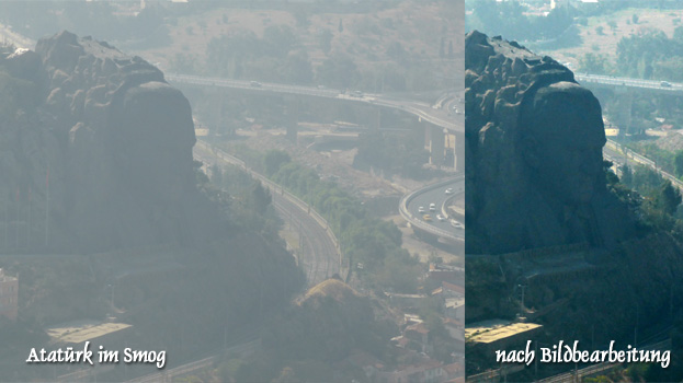 Izmir ist vor lauter Smog kaum zu sehen. Die Drei-Millionen-Stadt liegt in einem Becken, das nur zum Meer hin offen ist, und von da kommt der Wind. Wir finden rasch einen Parkplatz im Zentrum, doch es dauert eine Ewigkeit, bis wir ihn erreichen, da er auf der anderen Seite einer mehrspurigen Straße mit geteilten Fahrbahnen und ohne Möglichkeit zum Wenden liegt. Obwohl ich mich für die Stadtbesichtigung kräftig gedopt habe, schaffe ich nur das kurze Stück zum Konak Meydani, dem hübschen Platz, auf dem sich das Wahrzeichen der Stadt, der Uhrturm Saat Kulesi und eine niedliche Moschee befinden. Dort sitzen wir auf einem Bankerl und sehen den Kindern beim Tauben Füttern zu. Wir fahren noch auf den Kadifekale (N38 24.838 E27 8.840), den Aussichtsberg der Stadt, von dem sich ein bei smogfreiem Wetter spektakulärer Blick über die riesige Stadt erahnen lässt. Bis wir aus der Stadt raus sind, ist es, obwohl es kein nennenswertes Verkehrsproblem gibt, Mittag und bis zum Abend schaffen wir es mit etlichen Pausen bis Troja. Seit langem schon, eigentlich seit dem Autobahnende nach Antalya, fällt uns auf, dass ausgerechnet hier, wo auf Grund des Tourismus viel Verkehr herrscht, der anderswo ausufernde Straßenbauwahnsinn nicht angekommen ist. Zwar gibt es reichlich Baustellen, doch die sind verwaist, oft wächst schon hohes Unkraut durch den glatt gewalzten Unterbau neuer Fahrspuren. Um nicht das Steinhaufensyndrom zu bekommen, fahren wir an Pergamon und Assos vorbei, so wie gestern an Didyma und Milet. Zu diesen Besichtigungen wären wir ohnehin gesundheitlich nicht in der Lage gewesen. Seit dem Nachmittag hat auch Susi Halsschmerzen und fühlt sich krank. Wo die sich wieder angesteckt hat? Wir übernachten am Rande eines Maisfeldes etwa einen Kilometer vom Eingang zu den Ausgrabungen von Troja. Km 357/9.468.