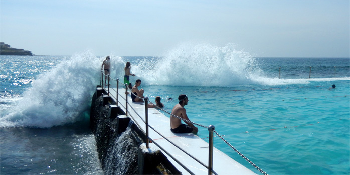 Unter bestmöglicher Vermeidung von Montagmorgenstaus und unter Sydneys Flughafen unten durch fahren wir nach Bondi Beach, Sydneys weltberühmtem Strand am Pazifik. Es ist zugegebener Maßen ein schöner Sandstrand, an dem es keine Liegen und Sonnenschirme à la Jesolo gibt, und die Atmosphäre ist beinahe familiär und viel entspannter als zum Beispiel in Miami, aber warum das einer der schönsten Strände der Welt sein soll, können wir nicht so recht nachvollziehen. Was wir aber ganz toll finden, ist Baden im Icebergs Pool am Südende des Strandes, einem Schwimmbecken, das sein Wasser von der Brandung des Ozeans erhält. Wir fahren weiter auf Watson Bay, so heißt die Landzunge, die die südliche Hafeneinfahrt von Sydney bildet, wo man auf der geschützten Seite in ruhigem Wasser und mit echt grandiosem Blick auf Sydneys Skyline, Oper und Brücke schwimmen kann. Am Nachmittag machen wir uns auf den Weg quer durch Sydney in die nordwestlich davon gelegenen Blue Mountains, wo wir auf einem total gemütlchen Rastplatz übernachten. Km 166/14.590/90.356.