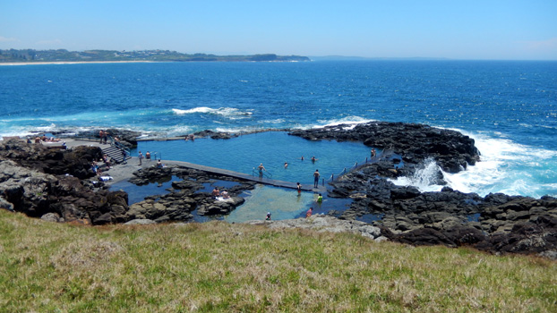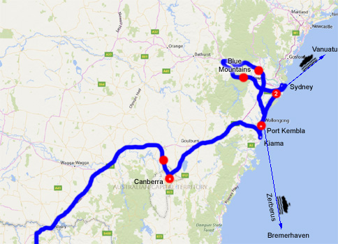 Nach einer Rundfahrt durch das Stadtzentrum machen wir uns auf den Weg Richtung Sydney, das wir uns morgen ansehen wollen. Etwas ungewohnt sind die vielen Radfahrer auf der Autobahn; der Pannenstreifen ist zugleich Radweg. Speziell bei Auf- und Abfahrten muss man da speziell achtsam sein. Wir machen einen kleinen Umweg, um uns den Küstenort Kiama anzusehen. Vor Shellharbour führt die Straße eine mehrere hundert Meter hohe Geländestufe hinab, sie windet sich dabei in Serpentinen durch einen üppigen Regenwald, wie man in Australien kaum einen sieht. Wahrscheinlich stauen sich an dem Escarpment häufig die Wolken und es kommt zu hohen Niederschlagsmengen. Kiama ist ein sehr netter und reich frequentierter Ferienort mit mehreren Stränden und einem nett gelegenen Leuchtturm. Außerdem gibt es zwei Blowholes. Während das größere beim Leuchtturm kaum was ausspuckt, bekommen wir beim Little Blowhole riesige Wasserfontänen zu sehen. Auch die Autobahn von hier nach Sydney ist ein wenig speziell: Sie führt durch Orte, in denen Querstraßen, ja sogar Hauseinfahrten von der Autobahn abgehen, auch Ampeln kommen vor. Auf manchen Rastplätzen wird Autofahrern gratis Kaffee angeboten nach dem Motto "Revive - Survive the Drive!". In Kogarah, einem Vorort von Sydney, übernachten wir sehr nett auf einem Sportplatz. Km 357/14.416/90.181.