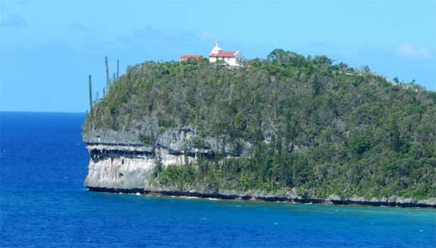 Lifou ist die größte der vier zu Neukaledonien gehörenden Loyalitätsinseln. Vom Ankerplatz der Sun Princess haben wir herrlichen Blick auf die Kirche von Easo und die malerisch auf einer Landspitze gelegene Kapelle Notre Dame de Lourdes. An Land ist es zunächst ein wenig schwierig, weil es keine Taxis gibt, angeblich auf der ganzen Insel nicht. Schwer zu glauben. Es gelingt uns aber, an einer vierzigminütigen "Tour" durch den Ort Easo teilzunehmen. Wir halten kurz an der Kirche (leider versperrt), dürfen uns die Rundhütte des "Chiefs" ansehen (mit Matten ausgelegt, durch Leuchtstoffröhren erhellt, bis auf ein paar Blumenstöcke leer) und machen einen Fotostop an einer Bucht mit kristallklarem Wasser und Blick auf unser Schiff. Nun schnorcheln wir in der Nähe des Anlegers unserer Tenderboote, aber hier ist das Wasser vom feinen Sand getrübt. Ganz anders auf der anderen Seite der Landspitze. Da kassieren sie zwar stolze Eintrittsgebühr, weil's ein Naturreservat ist, aber dafür ist's, als würd man in einem Aquarium schnorcheln. Phantastisch! Beim Besuch der Kapelle Notre Dame mit großer Marienstatue auf dem Dach fallen Schnitzereien an Pfählen mit naturreligiösen, "heidnischen" Motiven auf, die sich sehr nahe an die Kirche wagen.