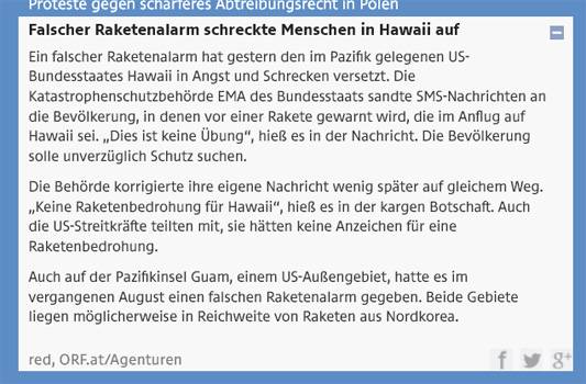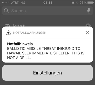 Samstag, 13. Jänner 2018, Tag 71/448, Raketenangriff auf Hawaii