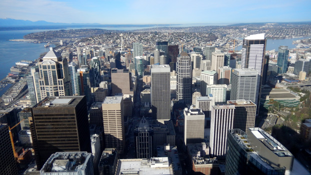 Die Nacht in einem Flugzeug von Alaska Arilines ist kurz und in Seattle ist es ziemlich kalt. Mit dem Zug fahren wir zum Columbia Tower, von dessen oberstem Stockwerk sich ein toller Blick auf die City und die Space Needle bietet, man sieht sogar bis zum schneebecketen 4.400 Meter hohen Mount Rainer, schon wieder ein Vulkan. Mit einem Bus geht es dann zum Kerry Park, wo wir phantastisch die Skyline vor uns haben. Am Abend fliegen wir dann ...