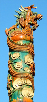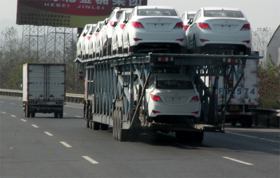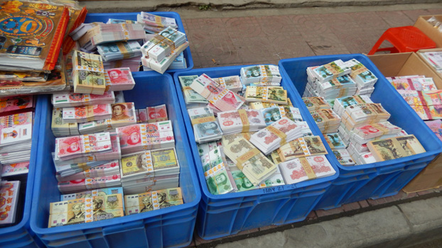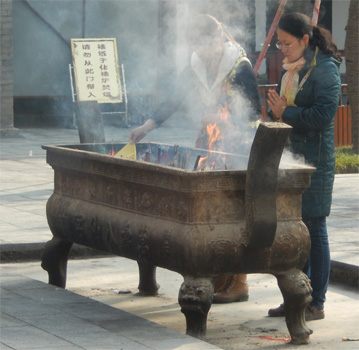 Nach einem kurzen Besuch bei der Kleinen (N34.240546 E108.936241) und der Großen Wildganspagode, die in Parks stehen, in denen in Gruppen zu langsamer Musik getanzt wird, fahren wir zum taoistischen Tempel der Acht Unsterblichen (N34.265929 E108.975151). Er liegt inmitten eines Gewirrs von schmalen Gässchen, in denen es sich staut, weil Leute mit eigentlich zu großen Autos durch wollen. Rund um den Tempel wird stapelweise, ja sogar kartonweise, Falschgeld verkauft. Es wird in eigens dafür vorgesehenen Wannen vor dem recht hübschen Tempel zum Totengedenken verbrannt. Es gibt aber auch Papierkleidung, Papierschuhe, Goldbarren, Autos und Häuser aus Karton zu kaufen, auch das wird verbrannt. Wir kaufen natürlich ein paar Bündel Falschgeld als Souvenir, was Li nicht besonders gefällt, weil er fürchtet, es könnte uns allen Unglück bringen. Ich verspreche ihm, zu Hause einen Teil des Geldes im Gedenken an die Verstorbenen zu verbrennen. Dem Tempel gegenüber befindet sich der "Antiquitäten"-Markt (N34.265003 E108.975313), auf dem es eine Menge alt aussehender Dinge zu kaufen gibt, die allesamt aber eines nicht sind: alt. Auf Empfehlung des Reiseführers fahren wir noch zum Mausoleum des Kaisers Jingdi, eine Top-Sehenswürdigkeit, wo "es nur wenige Besucher gibt". Doch schon von der Autobahnabfahrt staut es sich wie wild, weil tausend Chinesen auch da hin fahren. Das Mausoleum ist dann aber schwach besucht, die meisten spazieren herum oder picknicken. Die vielen Autos auf dem Parkplatz bieten eine tolle Gelegenheit, Automarken zu studieren. Neben vielen VW, Audi, BMW und anderen bei uns reichlich bekannten Marken, gibt es auch eine Vielzahl von Marken, die man bei uns nicht kennt (siehe Foto!). Die Grabanlage beherbergt eine Vielzahl von tonernen Figuren, die ein klein wenig an die Terrakotta-Armee erinnern, aber bei weitem weder an Zahl noch an Detailreichtum an sie herankommen. Auch auf dem Rückweg staut es sich wieder über eine Stunde. Da mag man sich fragen, warum wir uns das antun. Die Antwort ist einfach: Ab dem Zeitpunkt, an dem wir daran gedacht haben, umzukehren, gibt es keine Möglichkeit mehr dazu, da die Straßen Einbahnen sind. Erst bei Dämmerung erreichen wir Tiang Ling, das Grab der einzigen Kaiserin der Tang Dynastie. Es befindet sich auf einem Hügel, zu dem eine von zahlreichen Granitfiguren gesäumte Prachtstraße führt. Wir übernachten in der nächsten Kleinstadt, Qianxian. Zum Abendessen landen wir in einem recht teuren Fischlokal. Km 145/3.111/29.394.