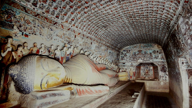 Susi geht es heute wieder besser, mir nicht. Es ist aber keine Grippe, sondern eine Angina, die mich beeinträchtigt. Es trifft sich gut, dass heute kein Fahrtag ist. Am Vormittag sehen wir uns die Mogao-Grotten an (Ticket Office N40.160959 E94.766676), die ein wenig außerhalb von Dunhuan in der Wüste gelegen sind. Hier wurden ab dem vierten Jahrhundert über etwa tausend Jahre mehr als 4.000 Höhlentempel angelegt. Wir besuchen im Rahmen einer Führung einige dieser Tempel, in denen sich jeweils mehrere Statuen von Buddha und seinen Schülern befinden, die, ebenso wie Wände und Decken reich und bunt bemalt sind. Der Höhepunkt der unglaublichen Anlage ist ein 30 Meter hoher sitzender Buddha, dem man zum Schutz vor der Witterung einen mehrstöckigen Tempel vorgebaut hat. Nach einem Genesungsschlaf schlendern wir am Nachmittag durch die Dünen zum Mondsichelsee. Eine hoch perverse Angelegenheit: Nicht nur, dass man reichlich Eintritt bezahlen muss, um zu den Dünen zu gelangen, so führt ein Gehweg durch die Dünen, damit man nur ja keinen Sand in die Schuhe kriegt. Wer auf die Dünen steigen will, borgt sich grellorange Schuhsäcke aus, die unter dem Knie zugebunden werden und den selben Zweck verfolgen. Zum leichteren Aufstieg hat man an mehreren Stellen Aufstiegshilfen in Form einer auf die Dünen gelegten Strickleiter angebracht. Man kann die Dünen auch per Kamel, Quad, Schi, Surfbrett, ja sogar Paragleiter oder Hubschrauber erkunden. Abendessen gibt's auf dem Nachtmarkt. Wir kaufen uns an einem Stand Fleischspieße, werden zum Essen aber ins Lokal gebeten. Da sitzt schon eine fröhliche Runde Chinesen, die uns zuprosten und im nächsten Moment haben wir einen Becher grauslichsten Schnaps vor uns stehen. Nein, eigentlich ist er ja noch nicht grauslich. Erst hinterher. Er erinnert entfernt an Grappa und hat, wie wir gestern in einem Spirituosengeschäft gesehen haben, zuallermindest 48 % Alkohol. Die gastfreundlichen Chinesen geben uns noch einen von ihren Spießen und schenken beim Schnaps nach. Als der beginnt, grauslich zu werden, treten wir den Rückzug an, bevor wir noch mehr von dem Zeugs trinken müssen. Km 67/5.006/31.290.