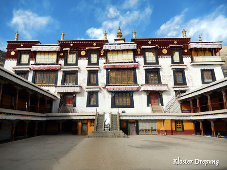 Das Leben in Tibet ist nicht einfach: Jeden Tag hab' mühsam dafür zu sorgen, dass wir die Nacht ohne Erfrierungen überstehen, und wenn ich mal schlafen könnte, hab ich Schlafapnoe. Und das ist ech übelst. Nicht nur, dass man keine Luft kriegt, wenn man schläft, man wird mehrmals in der Minute geweckt, glaubt dass man ersticken muss und in der Früh ist man wie gerädert. - Obwohl China eine enorme Ost-West-Ausdehnung besitzt, gilt im ganzen Land die Peking-Zeit. Da wir von Peking nun sehr weit nach Westen gefahren sind, hat das zur Folge, dass die Sonne erst um halb neun auf- und um 19 Uhr untergeht. Das ist natürlich ein wenig gewöhnungsbedürftig. Wir besichtigen heute den Potala-Palast, den Winterpalast des Dalai Lama. Von älteren Fotos kennt man den Palast mit wehenden Gebetsfahnen, die wurden aus "politischen Gründen" entfernt. Der Aufstieg ist wegen der dünnen Luft mühsam und wir lassen uns sehr, sehr viel Zeit. Der Palast zählt 13 Stockwerke, von denen nicht alle für Touristen oder Pilger zugänglich sind, und gliedert sich in einen Regierungsteil und in einen religiösen Teil. Zusammen mit dem Pilgerstrom durchschreiten wir unzählige Räume, die wie Tempel mit massenhaft Figuren, Schmuck, Wandmalereien ausgestattet sind. Immer wieder kommen wir aus dem Staunen nicht heraus. Der Palast ist einfach fantastisch, besonders die Grabstupas der Dalai Lamas. Ein Foto vom derzeit im Exil regierenden 14. Dalai Lama sucht man nicht nur im Palast, sondern in ganz China vergeblich. Leider ist im gesamten Palast das Fotografieren verboten. Am Nachmittag fahren wir mit einem Taxi zum Kloster Drepung, das auf einem Berg gelegen ist und zunächst völlig unscheinbar aussieht. Doch die Klosteranlage ist groß wie ein Dorf und immer, wenn man einen Tempel durchschritten hat, führt eine Stiege oder eine Leiter in den nächsten Tempel. In unzähligen Räumen beten Mönche und viele Gläubige bringen Opfer dar. Leider wird uns der Anstieg irgendwann zu anstrengend und wir müssen die Besichtigung abbrechen. Zurück beim Zerberus müssen wir feststellen, dass unser Heizstrahler, den wir vor ein paar Tagen gekauft haben, kaputt ist. Made in China halt. Ich weiß schon, dass unsere Heizungsprobleme langsam unglaubwürdig klingen, aber sowas kann man nicht erfinden. Ich fahre mit einem Taxi schnell auf den Markt (Fachgeschäfte haben schon zu) und kaufe einen neuen, dem man die mindere Qualität schon aus der Ferne ansieht. Der Händler schwört aber darauf, dass es ein hochwertiges Produkt ist, und verspricht zwei Wochen Garantie! Vielleicht haben wir Glück und er hält die paar kalten Nächte, die wir noch haben. In Nepal ist es laut Wetterbericht angenehm warm.
