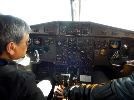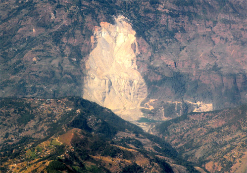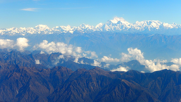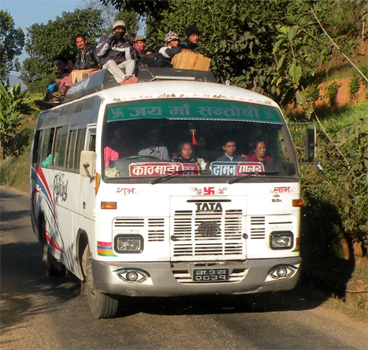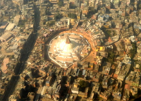 Die Ruhe hält leider nicht die ganze Nacht: Um halb drei schrecken wir hoch, weil Affen über das Autodach laufen. Haben wir uns unter einen Baum gestellt und ist der Zerberus eine bequeme Auf- oder Abstiegshilfe? Weil das Getrample nicht aufhört und wir Angst haben, dass eine der Plexiglasdachhauben kaputt gehen könnte, gehe ich nachsehen. Nein, kein Baum, aber fünf oder sechs ausgewachsene Rhesusaffen vom Kaliber 30 bis 40 Kilo sitzen auf dem Auto. Ich werfe mit einem Stein nach ihnen, worauf die Affen kreischen, was wiederum die vielen Hunde aufweckt, die anscheinend auf dem Parkplatz geschlafen haben. Sie stimmen ein vielstimmiges Gejaule an und es ist rasch klar, dass wir hier weg müssen. Wir fahren ein Stück den Berg hinunter und an einer Stelle, wo das Gefälle nicht allzu groß ist, machen wir einen neuen Versuch einer Nachtruhe. Es bleibt beim Versuch, denn ab fünf kommen Pilger laut betend den Weg zum Tempel herauf. Nach dem Frühstück fahren wir eine Runde um den Affenberg, um uns die Tempel, Stupas und Tore vor den Stiegen an der Basis des Berges anzusehen. Dann geht es zum Flughafen, weil wir einen Himalaya-Rundflug machen möchten. Doch man sagt uns, dass wegen des Nebels keine Inlandsflüge abgewickelt werden. Wir sollen morgen kommen. Das will ich halt gar nicht verstehen. Wenn das Wetter für einen Auslandsflug gut genug ist, dann wohl auch für einen Inlandsflug. Außerdem hat es ohnehin den Anschein, dass sich der Nebel hebt. Wir warten einfach eine Stunde. Und dann noch eine halbe. Nun hören wir, dass Yeti Air die Rundflüge für heute storniert hat, aber Buddha Air fliegt und plötzlich geht alles ganz schnell und wir sitzen in einer zweimotorigen Turboprop. Über dem bisschen Nebel ist es völlig klar und wir haben beste Sicht auf den Himalaya. Die beiden Stewardessen haben anscheinend eine Bergführerausbildung, denn sie kennen jeden Gipfel. Auf dem Rückflug vom Everest ist auch der Bergrutsch im Botekoschi-Valley gut zu sehen, sogar die Behelfsstraße ist zu erkennen. Zu Mittag sehen wir uns in Bodnath den größten Stupa der Welt an und speisen in einem Dachrestaurant mit Blick auf den Stupa. Nun lassen wir noch das Auto waschen und stauen uns durch den Abendverkehr, so dass wir erst bei Dunkelheit unseren Einstellplatz erreichen. Man hat uns wirklich eine Art Carport für den Zerberus gebaut! Km 32/8.807/35.087.